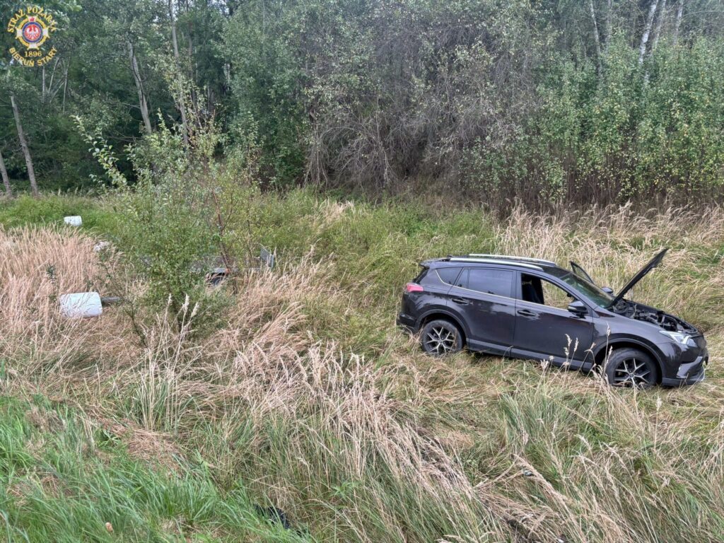 Wstępne ustalenia wskazują, że kierowca osobówki nie zachował należytej ostrożności podczas jazdy z przyczepą, doszło do jej wywrócenia wysypania się ładunku (małe bale), a następnie dachowania w rowie.