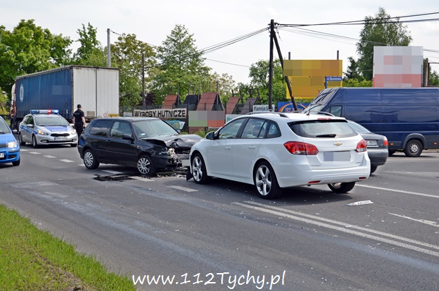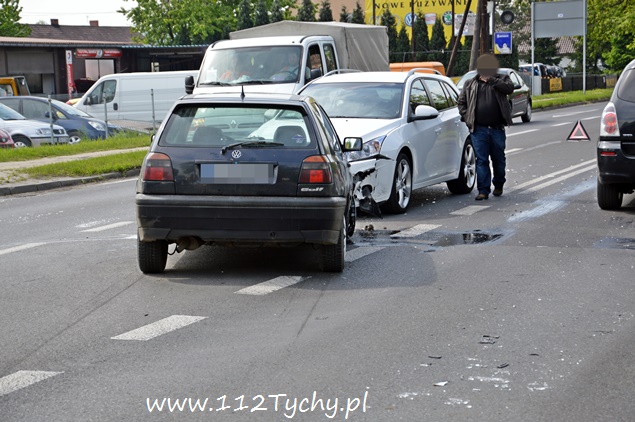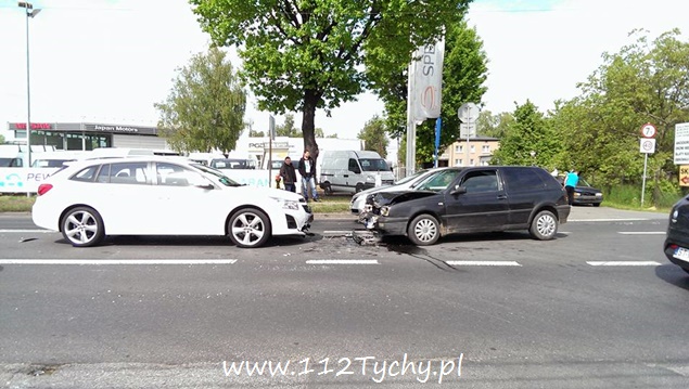 15 maja około godziny 14.20 do dyżurnego tyskiej Policji wpłynęło zgłoszenie o zdarzeniu drogowym na ul. Mikołowskiej w ciągu DK – 44 na wysokości skrzyżowania z ul. Podleską i Obywatelską. Ze zgłoszenia wynikało, że doszło tam do zderzenia trzech samochodów osobowych. Na miejsce w celu zabezpieczenia zdarzenia wysłany został jeden z patroli prewencji. Po przybyciu na miejsce Policjanci potwierdzili zgłoszenie. Do zderzenia pojazdoow doszło na pasach do lewo skrętów. Nikomu z kierujących nic się nie stało. Uszkodzone w zdarzeniu zostały trzy pojazdy: Opel Astra, VW Golf i Chevrolet. Po kilku minutach na miejsce dojechał również patrol drogówki. Ze względu na duży wyciek płynów eksploatacyjnych na miejsce wezwani zostali strażacy w sile jednego zastępu (GBA). W czasie wykonywania dokumentacji jak i porządkowania pasa drogowego ruch w miejscu zdarzenia był utrudniony. Po około godzinie rozbite pojazdy zostały usunięte i ruch został przywrócony. Policjanci prowadzą dalsze czynności w tej sprawie.