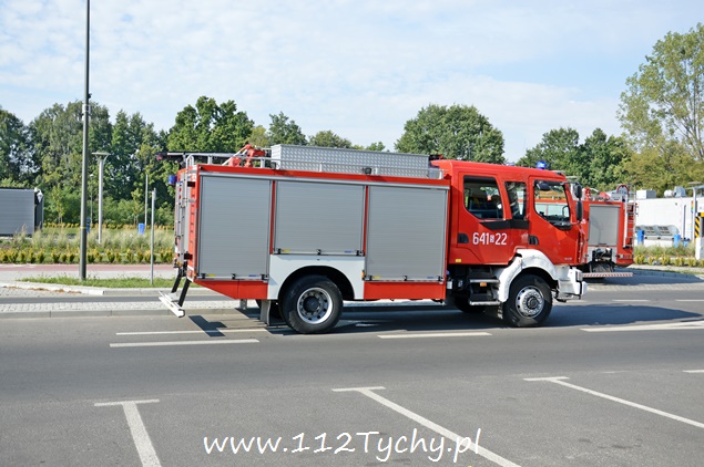 23 sierpnia około godziny 9.30 do MSK w Tychach wpłynął sygnał alarmowy z centrali pożarowej zainstalowanej na parkingu podziemnym przy skrzyżowaniu ulic Dąbrowskiego i Wyszyńskiego. Na miejsce wysłane zostały trzy zastępy z JRG Tychy (GBA,GCBA, SCRt). Po dotarciu na miejsce okazało się, że doszło do pożaru w skrzynce elektrycznej na poziomie: – 1. Pożar został ugaszony przez pracownika ochrony przy użyciu gaśnicy. Działania strażaków polegały na sprawdzeniu obiektu, jego zabezpieczeniu oraz oddymieniu. Po około 45 minutach działania zostały zakończone i zastępy wróciły do koszar.