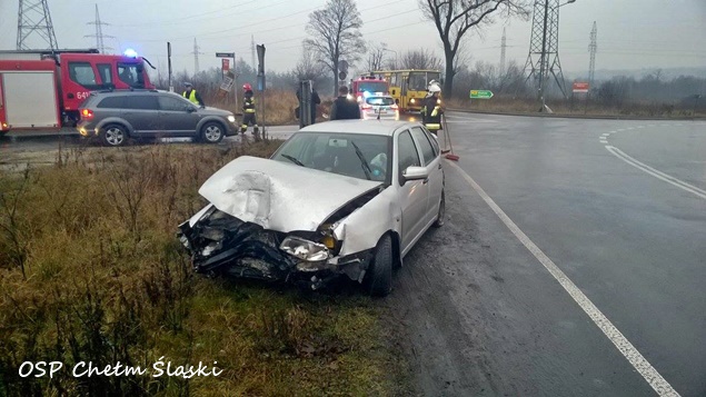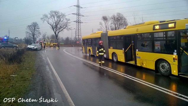 KOLIZJA AUTOBUSU MIEJSKIEGO Z OSOBÓWKĄ W CHEŁMIE ŚLĄSKIM