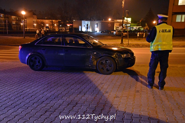 14 lutego około godziny 19.30 do dyżurnego tyskiej Policji wpłynęło zgłoszenie o kolizji drogowej na skrzyżowaniu ulic Bocheńskiego – Hlonda – Boczna. Na miejsce wysłany został patrol drogówki. Po dotarciu na miejsce okazało się, że doszło tam do kolizji Fiata Seicento z Audi. Jak ustalili policjanci kierujący Audi młody mężczyzna nie ustąpił pierwszeństwa przejazdu prawidłowo jadącemu Fiatem. Nikomu z podróżujących samochodami nic się nie stało. Uszkodzone pojazdy zostały usunięte na pobliski chodnik. Policjanci prowadzą dalsze czynności w sprawie tego zdarzenia.