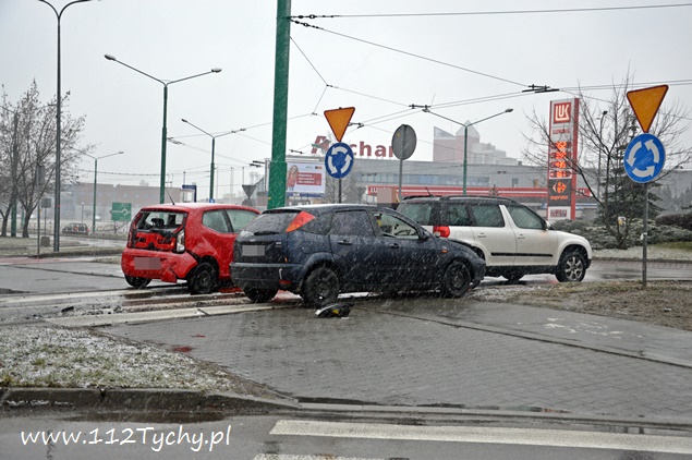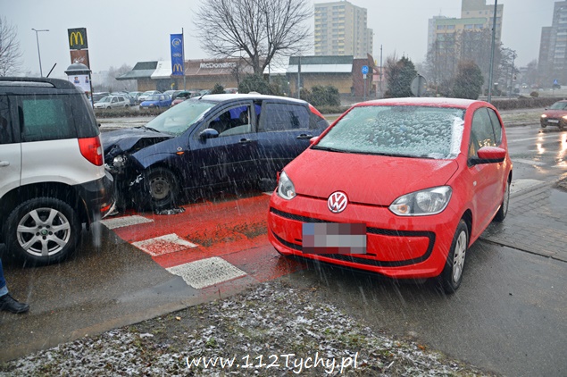 19 lutego przed godziną 16 na alei Bielskiej przy skrzyżowaniu z ulica Jaśkowicką (na wysokości restauracji Mc Donald’s) doszło do zdarzenia drogowego z udziałem trzech samochodów osobowych. Na tył VW najechał Ford, a następnie obydwa pojazdy uderzyły w poprzedzającą je Skodę. Na miejsce wezwany został ZRM i patrole Policji. Z uzyskanych informacji wynika, ze dwoje kierujących (z VW i Forda) zostało zabranych do szpitala na dokładniejsze badania. Ruch w kierunku Kobióra został skierowany objazdem przez ulicę Jaśkowicką i Stoczniowców 70. Po wykonaniu dokumentacji na miejsce wezwany został zastęp strażaków celem neutralizacji rozlanych płynów eksploatacyjnych oraz uprzątnięciu pasa drogowego ze szkła i innych elementów rozbitych pojazdów. Ruch był utrudniony przez blisko godzinę. Policjanci z KMP Tychy prowadzą dalsze czynności w sprawie tego zdarzenia.
