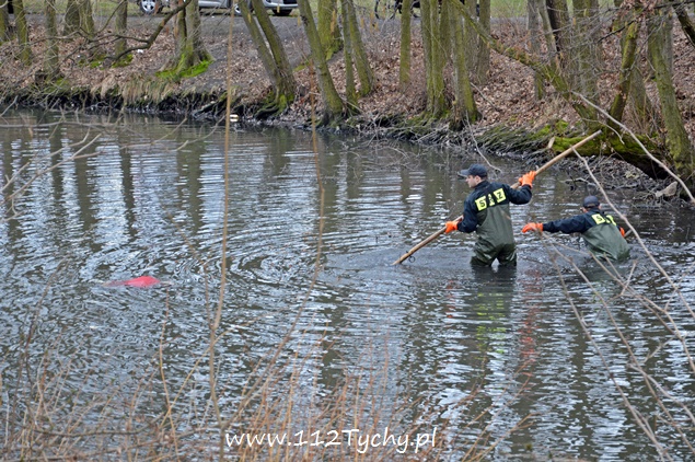 6 marca około godziny 10.05 do dyżurnego tyskiej policji wpłynęło zgłoszenie od młodego mężczyzny, że w stawie u zbiegu ulic Wyszyńskiego i al. Niepodległości najprawdopodobniej znajdują się ludzkie zwłoki, a obok przy ławce stoją rowery, przy których nie ma właścicieli. Na miejsce natychmiast wysłane zostały dwa patrole celem potwierdzenia zgłoszenia oraz zabezpieczenie tego miejsca. Po dotarciu na miejsce zgłoszenie niestety potwierdziło się. Teren został odgrodzony taśmą i zabezpieczony przez policjantów. Na miejsce wezwani zostali również tyscy strażacy. Strażacy po kilku minutach byli na miejscu jednym zastępem (SLKw + łódź). KDR podjął jednak decyzję, o nie wodowaniu łodzi. Strażacy ubrani w tzw. wodery weszli do wody i przy pomocy bosaka podciągnęli topielca do brzegu. Ciało około 60 letniego mężczyzny zostało wydobyte z wody i zabezpieczone przez policjantów. Działania strażaków po około trzydziestu minutach zostały zakończone. Policjanci wezwali na miejsce prokuratora oraz grupę dochodzeniowo – śledczą. Około godziny 13 ciało mężczyzny zostało zabrane przez zakład pogrzebowy z miejsca zdarzenia. Przyczyny i okoliczności tego zdarzenia wyjaśni policyjne dochodzenie prowadzone pod nadzorem tyskiej prokuratury.