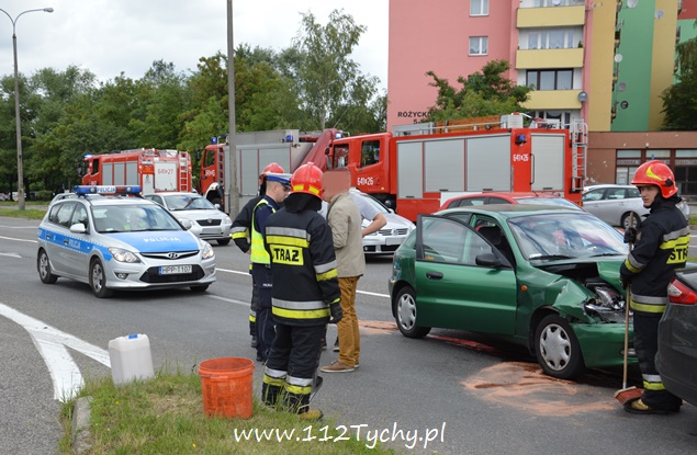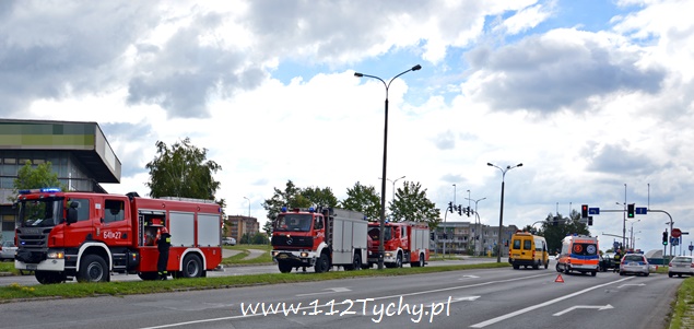 7 lipca około godziny 8.30 do MSK w Tychach wpłynęło zgłoszenie o zdarzeniu drogowym na ulicy Stoczniowców 70 w rejonie skrzyżowania z aleją Bielską. Ze zgłoszenia wynikało, że jednym z samochodów podróżowała kobieta w ciąży. Na miejsce wysłane zostały trzy zastępy z JRG Tychy (GCBA, GCBARt, SCRt), ZRM i patrol drogówki. Po dotarciu na miejsce okazało się, że doszło do najechania na tył poprzedzającego pojazdu. W tył Forda, który zatrzymał się przez sygnalizacja świetlną wjechało Daewoo. Kobieta została zabrana do szpitala na badania. Pas do jazdy na wprost w kierunku ulicy Sikorskiego został wyłączony z ruchu. Policja prowadzi dalsze czynności w tej sprawie.