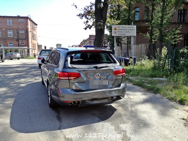 25 sierpnia po godzinie 12 na ulicy Katowickiej w rejonie Papierni na pasie w kierunku Katowic doszło do zdarzenia drogowego. O zdarzeniu poinformowany został dyżurny KMP Tychy. Na miejsce wysłany został patrol prewencji celem zabezpieczenia miejsca zdarzenia. Po dotarciu na miejsce okazało się, że doszło do zderzenia dwóch samochodów dostawczych i osobówki. Kierujący pojazdami usunęli pojazdy z drogi lecz na pasie drogowym została plama płynów eksploatacyjnych i rozbite szkło. Zostało to zabezpieczone trójkątem. Przybyli na miejsce policjanci w miejscu zdarzenia podjęli ręczną regulacje ruchu oraz wezwali na miejsce straż pożarną i ZRM do pasażerki jednego z samochodów. Po przybyciu na miejsce strażacy uprzątnęli porozbijane szkło oraz zmyli płyny eksploatacyjne – po dwudziestu minutach ruch został przywrócony. Na miejsce dojechał również patrol drogówki. Jak się okazało sprawcą zdarzenia był kierujący dostawczym Mercedesem, który zagapił się i uderzył w tył poprzedzającego go pojazdu, a ten z kolei uderzył w kolejny. Kierujący Mercedesem został ukarany mandatem za spowodowanie kolizji drogowej.