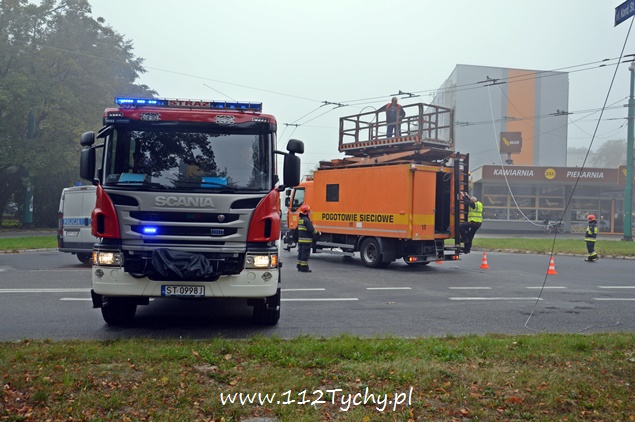 27 września około godziny 10 do MSK w Tychach wpłynęło zgłoszenie o zerwanej trakcji trolejbusowej na skrzyżowaniu ulic Edukacji z Wyszyńskiego. Na miejsce wysłany został jeden zastęp JRG Tychy (GCBARt), patrol Policji i pogotowie techniczne TLT. Po dotarciu na miejsce okazało się, że zerwaniu uległy odciągi. Na czas usuwania awarii ruch w miejscu zdarzenia był utrudniony. Strażacy kierowali ruchem. Po około dwudziestu minutach działania zostały zakończone i ruch przywrócono.