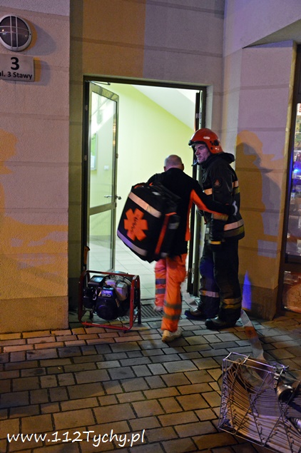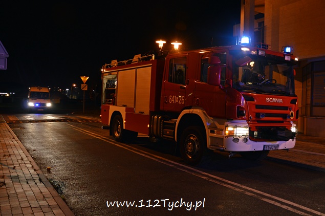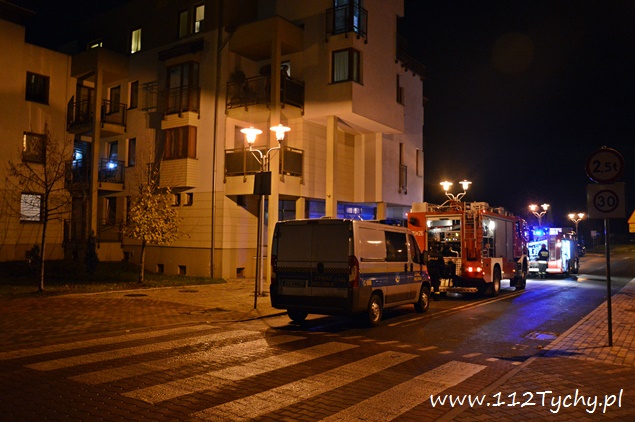16 listopada około godziny 19.40 do MSK w Tychach wpłynęło zgłoszenie o pożarze mieszkania w budynku wielorodzinnym przy ulicy Trzy Stawy. Na miejsce natychmiast zadysponowane zostały cztery zastępy straży pożarnej JRG Tychy (GBA, GBA, GCBA, SD), patrole Policji i Straży Miejskiej oraz ZRM. Po dotarciu na miejsce funkcjonariusze Policji (byli pierwsi na miejscu zdarzenia) po uzyskaniu informacji od lokatorów, że mieszkańcy (kobieta z dwójką dzieci) ewakuowali się z mieszkania, a w nim pozostały zwierzęta domowe (koty) podjęli natychmiast próbę ich odnalezienia – jednego udało się znaleźć, dwa pozostałe schowały się. Po dotarciu na miejsce pierwszych zastępów (GBA, GCBA) strażacy weszli do mieszkania – zastępy GBA i SD zostały wycofane – ponieważ sytuacja została szybko opanowana. W mieszkaniu panowało duże zadymienie – spaleniu uległ elektryczny podgrzewacz wody. Lokatorom nic się nie stało. Mieszkanie jak i klatka schodowa zostało przewietrzone i oddymione przy użyciu agregatu oddymiającego. Na miejsce wezwani zostali przedstawiciele spółdzielni mieszkaniowej celem zabezpieczenia uszkodzonej instalacji elektrycznej. Dzieci otrzymały od strażaków małe maskotki, aby zapomnieć o tej nieprzyjemnej sytuacji. Działania na miejscu trwały około godziny.