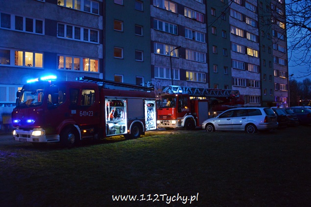 19 listopada około godziny 5 do MSK w Tychach wpłynęło zgłoszenie o dużym zadymieniu na klatce schodowej w budynku wielorodzinnym przy ulicy Hubala. Na miejsce zadysponowany został pluton gaśniczy z JRG Tychy (GBA, GBA, GCBA, SD) oraz patrol Policji. Po dotarciu na miejsce okazało się, że przyczyną zadymienia jest pożar drzwi do jednego z mieszkań na siódmym piętrze. Podany został jeden prąd wody z linii gaśniczej rozwiniętej klatką schodową. W mieszkaniu znajdowała się lokatorka do której wezwany został ZRM. Kobieta po przebadaniu pozostała w mieszkaniu. Działania trwały około godziny. Na miejsce wezwani zostali również przedstawiciele administracji budynku. Przyczyną pożaru było podpalenie. Tyscy Policjanci prowadzą dalsze czynności mające na celu ustalenie sprawcy podpalenia.