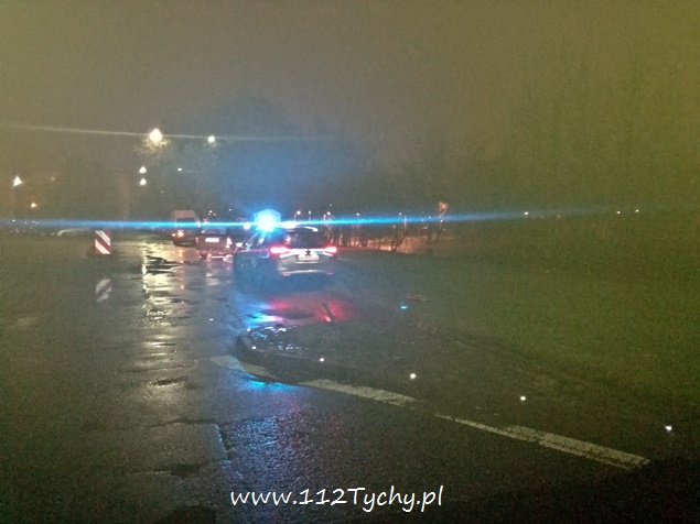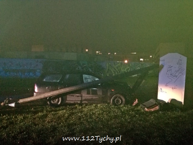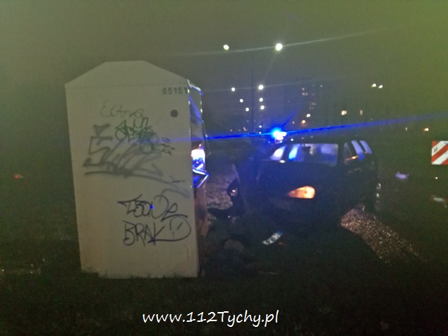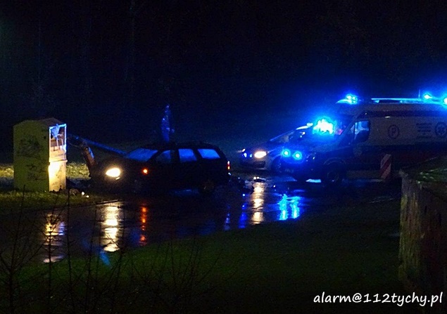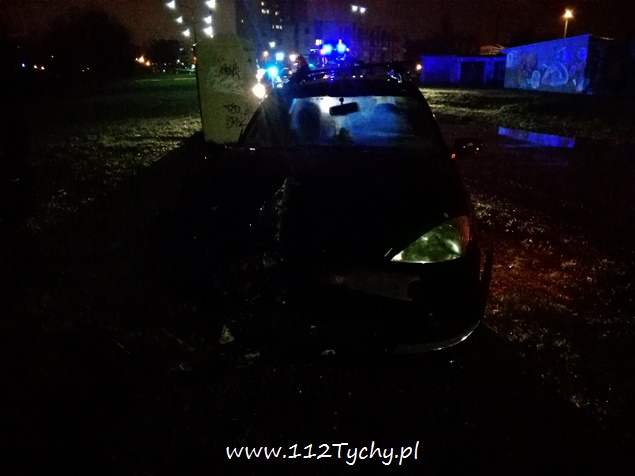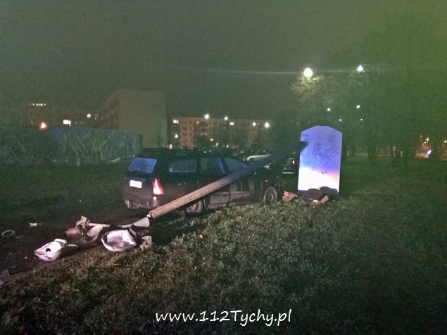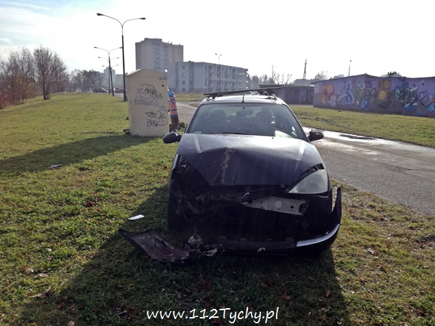 19 listopada około godziny 22 na ulicy Kopernika w pobliżu stacji kolejowej Tychy Zachodnie doszło do zdarzenia drogowego. Kierujący samochodem osobowym Ford Focus nie zapanował nad swoim pojazdem i uderzył z znak oznaczając szykanę, a następnie z dużą siłą uderzył w betonową latarnię uliczną. Latarnia w wyniku uderzenia złamała się i spadła na samochód. Na miejsce wezwany został patrol Policji i ZRM. Jak się okazało w trakcie badania, przyczyną zdarzenia był stan kierującego – 35 letni mężczyzna podczas badania trzeźwości wydmuchał ponad 2 promile. Został ona zabrany do szpitala na dalsze badania. Po badaniach trafił do izby wytrzeźwień, a po wytrzeźwieniu wprost do policyjnego aresztu. Ze względu na uszkodzenia na miejsce wezwane zostało pogotowie energetyczne, które odłączyło zasilanie w latarni, a następnie wezwani zostali tyscy strażacy w sile dwóch zastępów (GBA, SCRt), których zadaniem było odłączenie akumulatora w rozbitym pojeździe, usunięcie betonowej latarni z pojazdu oraz usunięcie pojazdu z pasa drogi na pobliski trawnik. Wrak samochodu został przekazany rodzinie sprawcy. Działania na miejscu trwały blisko dwie godziny. Tyscy policjanci prowadzą dalsze czynności w tej sprawie.