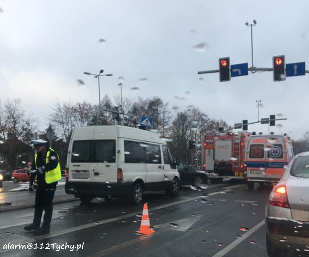 29 listopada po godzinie 7 na skrzyżowaniu ulic Mikołowskiej z Burschego i Dołową doszło do zdarzenia drogowego. Kierujący samochodem dostawczym Ford najprawdopodobniej nie dostosował prędkości do warunków panujących na drodze i doprowadził do zderzenia z dostawczym Mercedesem i osobowym Peugeotem. Peugeot siłą uderzenia został odrzucony na słup sygnalizacji świetlnej. Na miejsce wezwany został patrol Policji, ZRM i jeden zastęp JRG Tychy (GCBARt). Na szczęście skończyło się tylko na uszkodzonych pojazdach. Nikomu z podróżujących samochodami nic się nie stało. Ruch w miejscu zdarzenia był utrudniony przez blisko dwie godziny. Sprawca kolizji został ukarany mandatem.