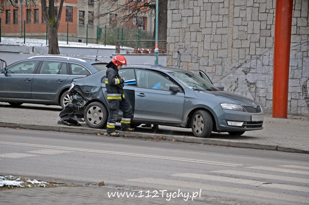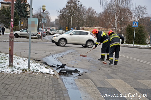 29 listopada około godziny 14 na skrzyżowaniu ulic Bocheńskiego – Boczna – Hlonda doszło do zdarzenia drogowego. Kierujący samochodem dostawczym Iveco jadąc ulicą Hlonda nie ustąpił pierwszeństwa przejazdu jadącemu ulicą Bocheńskiego kierującemu Skodą. Doszło do zderzenia. Na miejsce wezwany został patrol Policji oraz jeden zastęp JRG Tychy (GBA). Kierującym pojazdami nic się nie stało. Uszkodzone pojazdy zostały natychmiast usunięte ze skrzyżowania. Droga jednak pozostała zabrudzona plastikowymi elementami uszkodzonych pojazdów i płynem chłodniczym. Plastiki zostały zebrane do worka a rozlany płyn chłodniczy zasypany piachem. Dalsze czynności prowadzą tyscy policjanci.