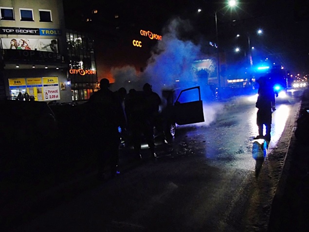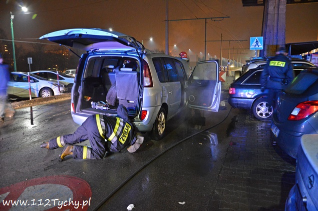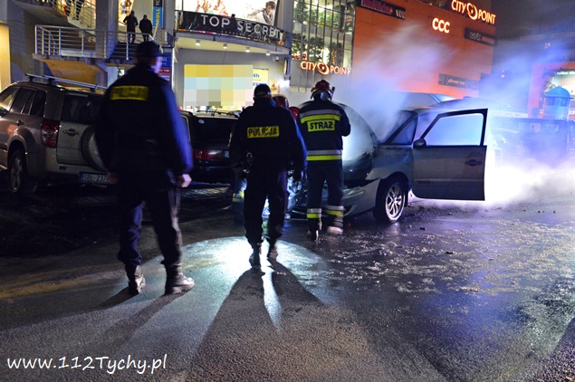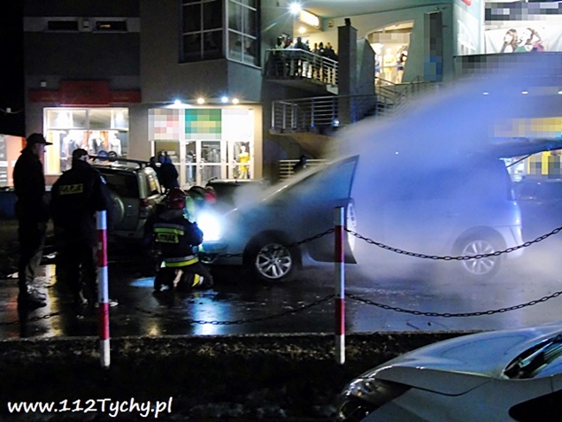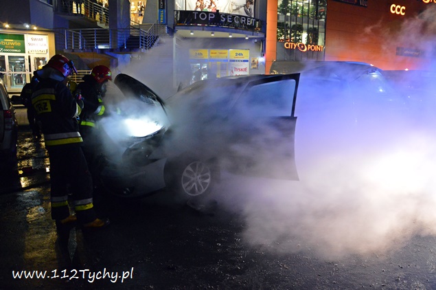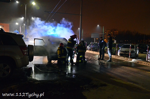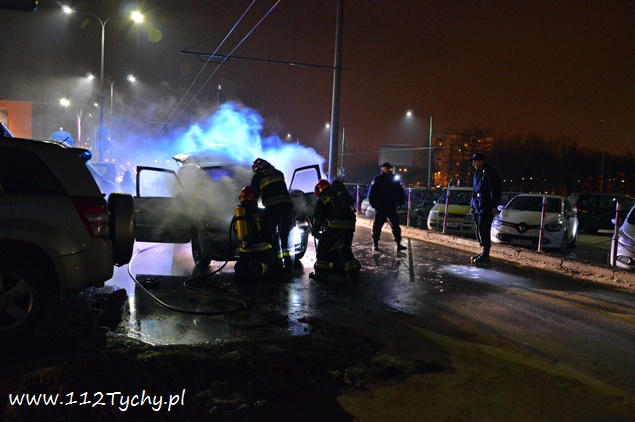 11 lutego około godziny 21.40 do MSK w Tychach wpłynęło zgłoszenie o pożarze samochodu osobowego na al. Jana Pawła II w rejonie DH Senator. Na miejsce natychmiast wysłany został jeden zastęp JRG Tychy (GBA) i patrol Policji. Jeszcze przed przyjazdem służb ratunkowych właściciel pojazdu wraz ze świadkami zdarzenia próbowali ugasić pożar gaśnicami, jednak bezskutecznie. Ruch w kierunku lodowiska odbywał się przez pobliski parking. Po około trzydziestu minutach pożar został ugaszony. Na miejsce wezwana została również piaskarka, aby posypać drogę solą – po pożarze na drodze znajdowało się dużo wody. Jak udało się nam dowiedzieć prawdopodobną przyczyną pożaru było zwarcie instalacji elektrycznej w rejonie nagrzewnicy pojazdu. Działania na miejscu zakończone zostały po około dwóch godzinach.