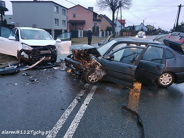 1 marca około godziny 5.30 na ulicy Ruchu Oporu w Bojszowach doszło do zderzenia trzech samochodów osobowych. Ze zgłoszenia wynikało, że w wyniku tego zdarzenia mogły zostać poszkodowane min. trzy osoby. Na miejsce zadysponowane zostały zastępy OSP Bojszowy Nowe (GBA), JRG Tychy (GBA, GCBARt, SCRt), OSP Świerczyniec (GBA), trzy ZRM i patrole bieruńskiej Policji. Po dotarciu we wskazaną lokalizację okazało się, że doszło do czołowego zderzenia dwóch samochodów osobowych (Seat i Hyundai), a w zdarzeniu uczestniczył również Fiat Punto. Działania strażaków polegały na zabezpieczeniu miejsca wypadku, odpięciu akumulatorów w rozbitych pojazdach oraz udzieleniu kwalifikowanej pierwszej pomocy jednej z poszkodowanych osób. Łącznie w zdarzeniu ucierpiały trzy osoby. Na czas działań ratowniczych droga została zablokowana przez policję i strażaków z OSP Świerczyniec. Bieruńscy Policjanci prowadzą dalsze czynności w tej sprawie.