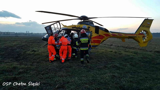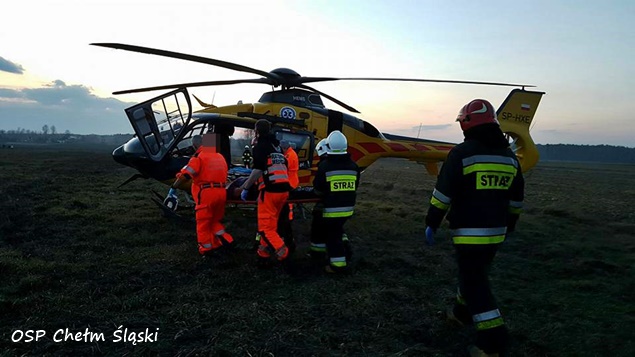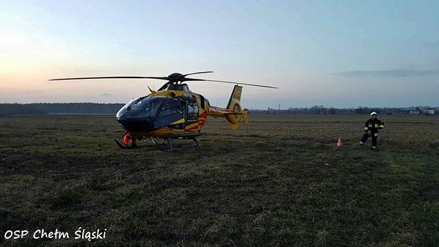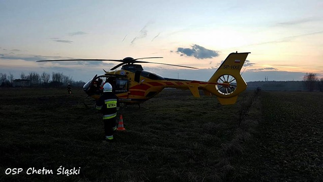 4 marca o godzinie 17.18 do MSK w Tychach wpłynęło zgłoszenie z prośbą o wyznaczenie i zabezpieczenie lądowiska dla śmigłowca HEMS Ratownik 6 w Chełmie Śląskim. Latająca karetka została zadysponowana przez zespół ratownictwa medycznego, działający na terenie jednej z prywatnych posesji przy ulicy Chełmskiej. Ratownicy medyczni zostali tam wezwani do kobiety która została uderzona w głowę podczas wycinania drzewa. Na miejsce natychmiast wysłane zostały zastępy OSP Chełm Śląski (GLBARt) i dwa zastępy JRG Tychy (GBAPr, SLRt) i patrol bieruńskiej Policji. Działania strażaków polegały na wytyczeniu i zabezpieczeniu terenowego lądowiska dla załogi latającej karetki oraz pomocy w transporcie poszkodowanej między ambulansami. Działania trwały około godzinę po czym zastęp wrócił do bazy.