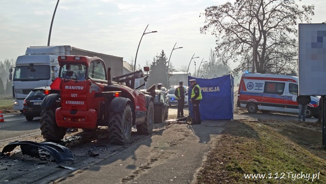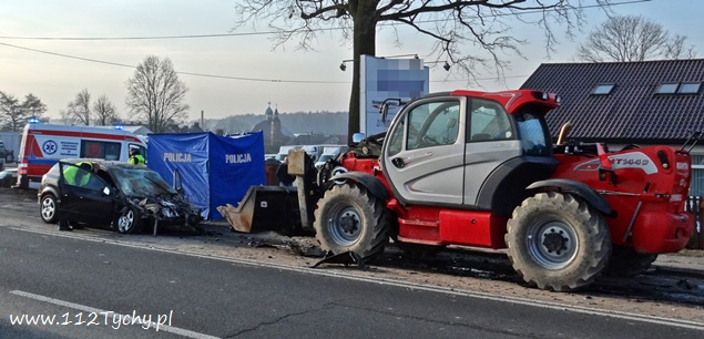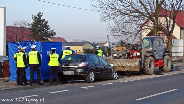 13 marca około godziny 6.30 na ulicy Mikołowskiej w rejonie skrzyżowania z ulicą Wierzbową doszło do tragicznego w skutkach zdarzenia drogowego. Z niewyjaśnionych przyczyn kierujący samochodem Opel Astra 36 – letni mężczyzna (mieszkaniec Tychów) zjechał swoim samochodem na przeciwległy pas ruchu i z dużą siłą uderzył czołowo w jadąca z naprzeciwka ładowarkę, kierowaną przez 60 – letniego mężczyznę mieszkańca Orzesza. Na miejsce wezwany został ZRM i patrole Policji. Niestety pomimo wysiłków przybyłych na miejsce ratowników mężczyzny nie udało się uratować. Lekarz stwierdził zgon. Pas w kierunku Tychów został wyłączony z ruchu – została wprowadzona zmiana organizacji ruchu na pasach w kierunku Mikołowa. Na miejsce zdarzenia przybył policyjny technik oraz prokurator. Trwa policyjne dochodzenie pod nadzorem tyskiej prokuratury mające na celu wyjaśnienie przyczyn i okoliczności tego tragicznego wypadku.