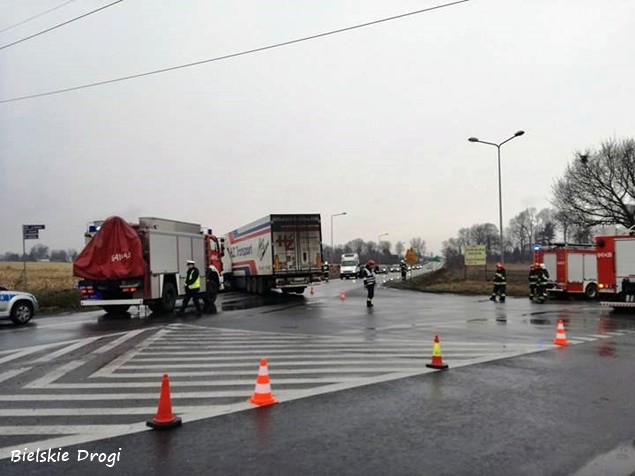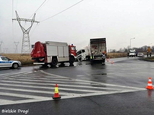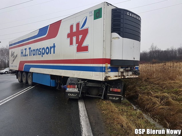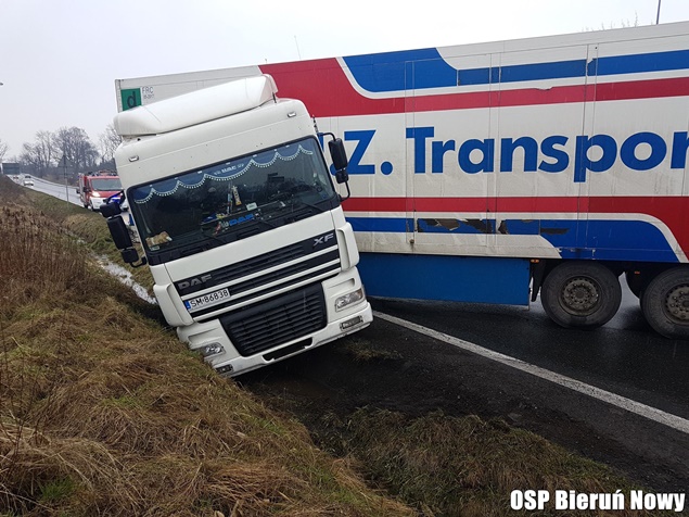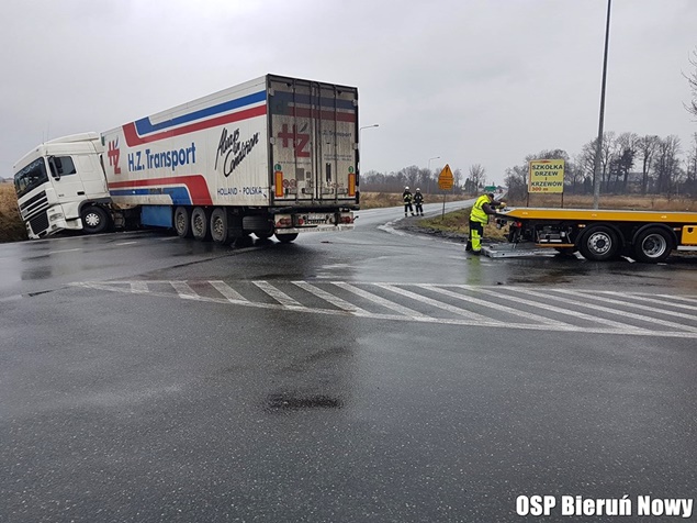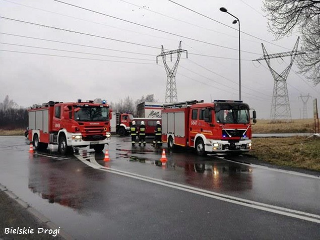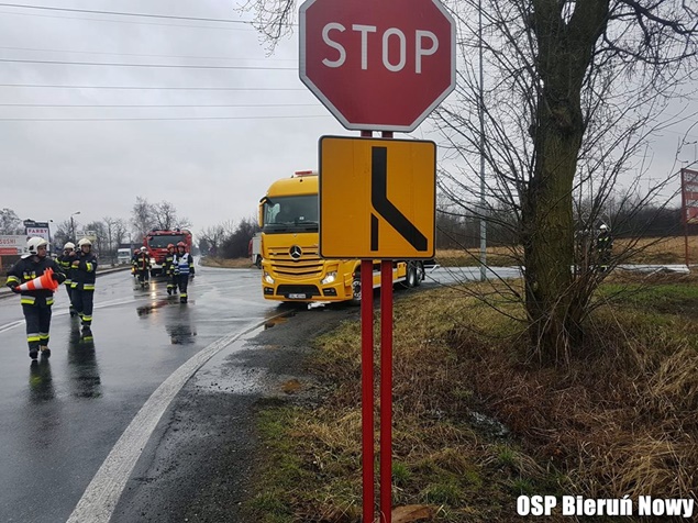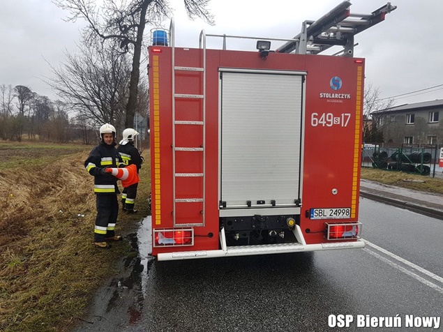 18 marca około godziny 9 na skrzyżowaniu dróg wojewódzkich 934 z 780 w Chełmie Śląskim Kopciowicach doszło do zdarzenia drogowego. Kierujący zestawem pojazdów DAF z naczepą wpadł w poślizg i wjechał do przydrożnego rowu. Ciągnik siodłowy zatrzymał się w rowie, a naczepa zablokowała ruch. Na miejsce natychmiast zadysponowane zostały wszystkie służby: patrole bieruńskiej Policji i liczne zastępy strażaków: OSP Chełm Śląski (GLBARt), OSP Bieruń Nowy (GBARt, SLRt), OSP Czarnuchowice (GBA) i JRG Tychy (GCBA, SCRt). Po dotarciu na miejsce strażacy z policjantami zabezpieczyli miejsce zdarzenia i wprowadzili ruch wahadłowy. Na miejsce wezwany został holownik pomocy drogowej, który wyciągnął zestaw z potrzasku. Po około trzech godzinach działania zostały zakończone i ruch został całkowicie udrożniony.