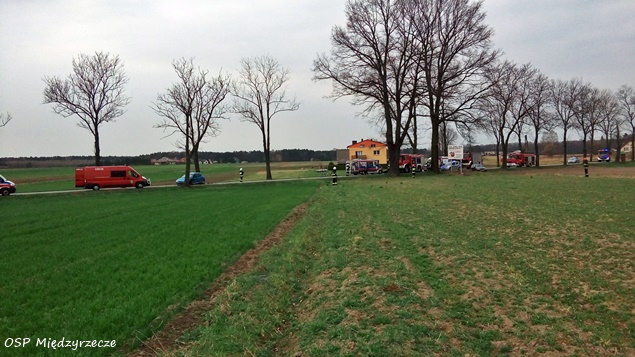 3 kwietnia około godziny 14.40 w Międzyrzeczu na ulicy Żubrów doszło do wypadku. Na miejsce zdarzenia zadysponowane zostały zastępy strażaków z JRG Tychy (GBA, GCBARt, SCRt), OSP Bojszowy Nowe (GBA), OSP Międzyrzecze (GLM), ZRM i patrole bieruńskiej Policji. Po dotarciu na miejsce okazało się, że doszło do czołowego zderzenia dwóch samochodów osobowych: Opel i Peugeot. Stan jednego z poszkodowanych (kierowca opla) wymagał transportu do szpitala specjalistycznego w Sosnowcu. W tym celu na miejsce zadysponowany został śmigłowiec HEMS – Ratownik 4 z bazy w Gliwicach. Działania strażaków poza zabezpieczeniem miejsca zdarzenia, udzieleniu poszkodowanym KPP polegały również na wyznaczeniu i zabezpieczeniu lądowiska dla latającej karetki. Jak wstępnie ustalili pracujący na miejscu policjanci oraz z relacji świadków wynika, że kierujący oplem astra jadąc od strony Pszczyny w kierunku Bojszów na prostym odcinku drogi, w trakcie wykonywania manewru wyprzedzania zjechał na przeciwległy pas ruchu i doprowadził do zderzenia z prawidłowo jadącym peugeotem 206, po czym dachował do przydrożnego rowu. W wyniku tego zdarzenia ranne zostały trzy osoby: dwie podróżujące Oplem oraz kierująca Peugeotem. Wszyscy trafili do szpitali. Kierująca Peugeotem 25 latka była trzeźwa – kierowcy Opla została pobrana krew do badania. Bieruńscy śledczy będą w tej sprawie prowadzić postępowanie, które pozwoli wyjaśnić dokładne przyczyny i okoliczności zdarzenia.