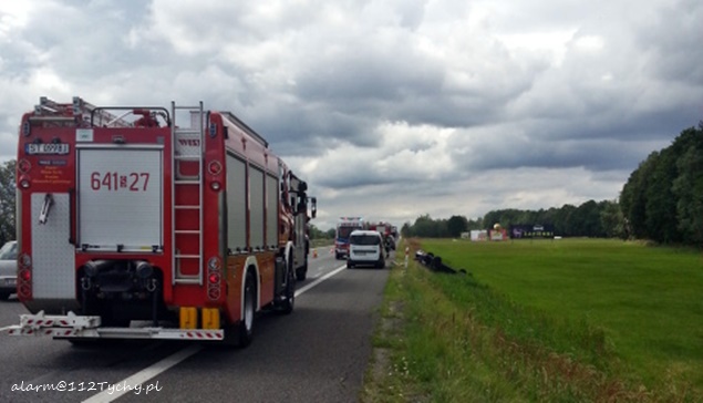 27 lipca po godzinie 12 na trasie S1 w kierunku Tychów na 562km doszło do dachowania Chevroleta. Samochodem podróżowały łącznie 4 osoby. Na miejsce zadysponowane zostały trzy zastępy JRG Tychy (GCBA, GCBARt, SCRt), ZRM i patrol Policji. Po dotarciu na miejsce zgłoszenie potwierdziło się. Będący na miejscu ratownicy medyczni podjęli decyzję o przewiezieniu do szpitali łącznie trójki pasażerów feralnego samochodu. Jedna z poszkodowanych osób została przetransportowana do szpitala śmigłowcem HEMS – Ratownik 4 z bazy w Gliwicach. Jak ustalili pracujący na miejscu policjanci oraz z relacji kierowcy samochodu wynika, że powodem dachowania był wystrzał opony. Na szczęście obrażenia poszkodowanych osób w tym zdarzeniu nie zagrażają ich życiu. Przez blisko 3 godziny prawy pas w kierunku Tychów był zablokowany, a na czas lądowania i startu śmigłowca LPR trasa była całkowicie zablokowana. Tyska Policja prowadzi dalsze czynności w tej sprawie.