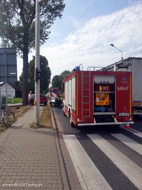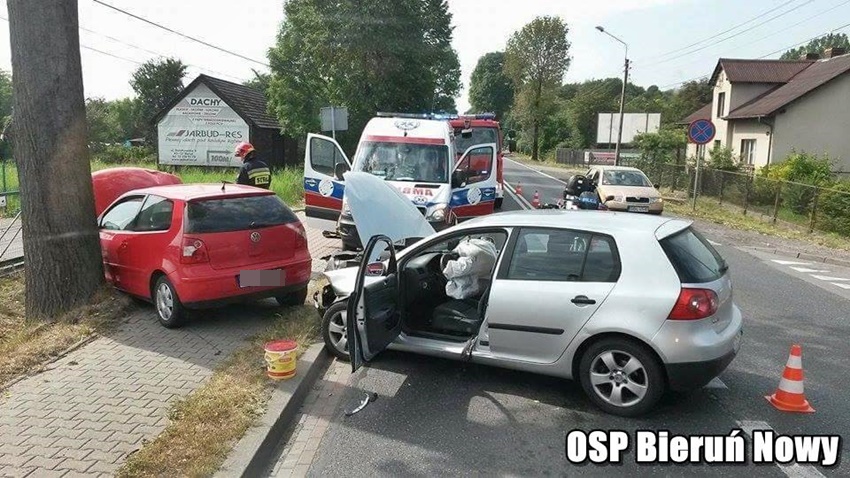9 sierpnia około godziny 14.40 w Bieruniu na skrzyżowaniu ulic Warszawskiej (DK 44) z ulicą Granitową doszło zdarzenia drogowego. Ze zgłoszenia wynikało, że w zdarzeniu brały udział dwa samochody osobowe marki VW. A [as w kierunku Oświęcimia został zablokowany. Na miejsce zadysponowane zostały zastępy OSP Bieruń Nowy (GBARt), JRG Tychy (GBA, SCRt) oraz ZRM i patrole bieruńskiej Policji. Po dotarciu na miejsce zgłoszenie potwierdziło się. Działania strażaków na miejscu zdarzenia polegały na jego zabezpieczeniu, udzieleniu kwalifikowanej pierwszej pomocy uczestnikom zdarzenia, a po zakończeniu działań Policji pomocy w uprzątnięciu drogi. Jak ustalili pracujący na miejscu Policjanci winną zdarzenia jest kierująca VW Golfem, która włączając się do ruchu z ulicy Granitowej na Warszawską nie ustąpiła pierwszeństwa przejazdu kierowcy VW Polo. Uczestnicy zdarzenia zostali przebadani przez ZRM i nie było potrzeby hospitalizacji. W trakcie działań ratowniczych ruch na ulicy Warszawskiej odbywał się wahadłowo. Bieruńscy Policjanci prowadzą dalsze czynności w sprawie tego zdarzenia.