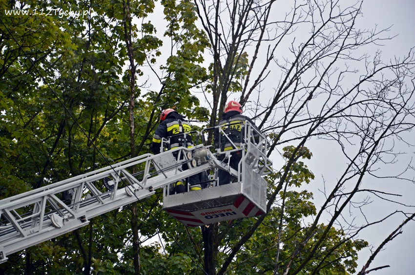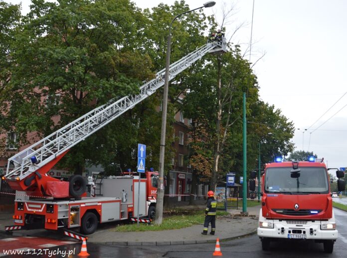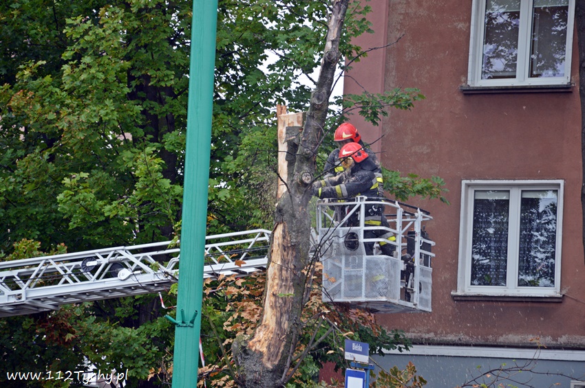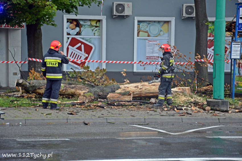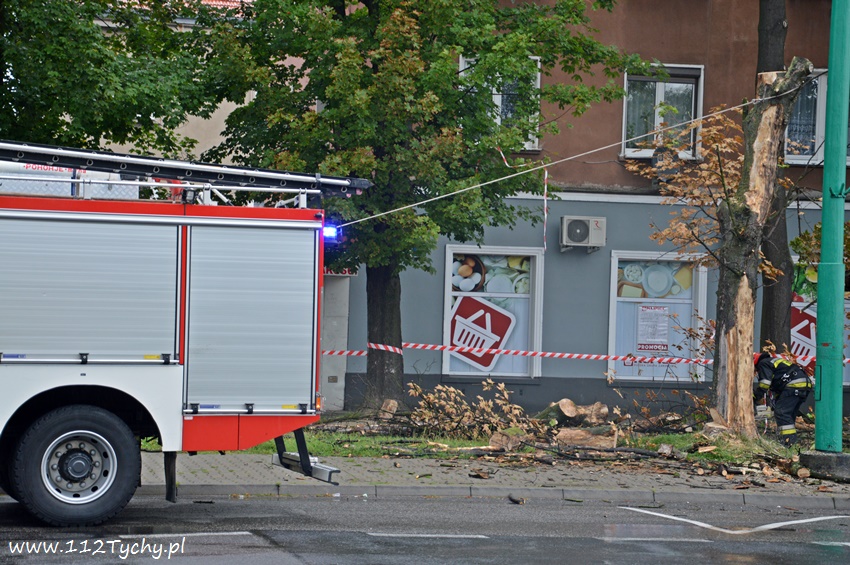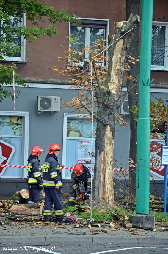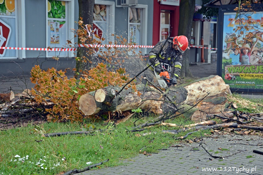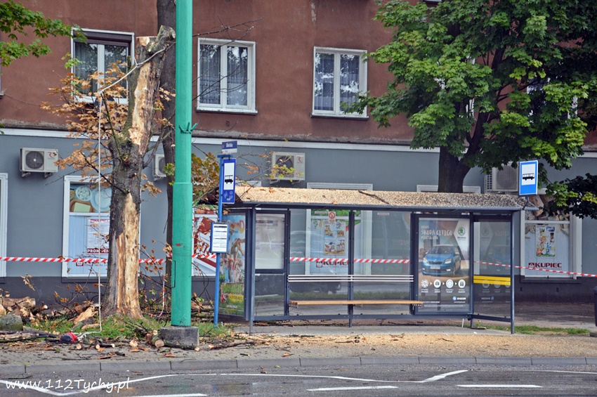 19 sierpnia około godziny 14.45 dyżurny SKKM PSP otrzymał zgłoszenie, że w rejonie przystanku autobusowego przy ulicy Budowlanych jest uschnięte drzewo, które zagraża przechodnim. Na miejsce wysłany został jeden zastęp JRG Tychy (GBA) celem sprawdzenia zgłoszenia. Po dotarciu na miejsce zgłoszenie potwierdziło się, a chodziło o drzewo, które już jakiś czas temu miało zostać usunięte przez firmę odpowiedzialną za utrzymanie zieleni w mieście. Ze względu na zagrożenie KDR zdecydował o konieczności natychmiastowej wycinki. Na miejsce zadysponowany został dodatkowy zastęp z JRG Tychy (SD). Po dotarciu na miejsce i sprawieniu drabiny mechanicznej strażacy przy użyciu pilarek łańcuchowych przystąpili do usuwania konarów i pnia drzewa. Po blisko godzinie drzewo zostało ścięte. Na miejsce wezwani zostali przedstawiciele firmy odpowiedzialnej za utrzymanie zieleni w mieście, którzy mają usunąć pozostałości drzewa i uprzątnąć teren działań. Do tego czasu miejsce gdzie leżą ścinki drzewa zostało odgrodzone.
