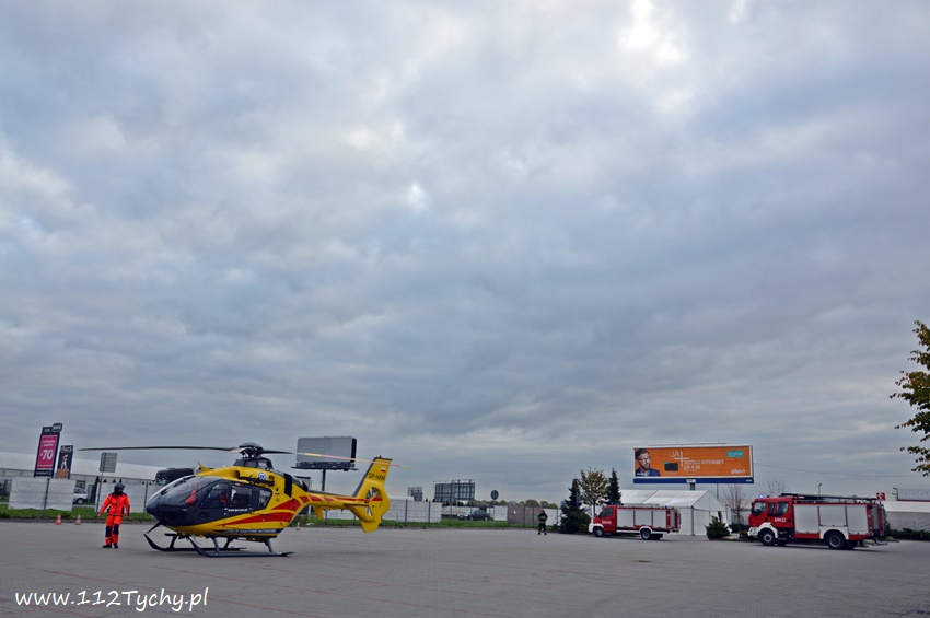 9 października przed godzina 8 rano na terenie Śląskiej Giełdy Kwiatowej przy ulicy Sadowej doszło do tragicznego w skutkach zdarzenia. W trakcie wykonywania prac na zadaszeniu pawilonów handlowych jeden z pracowników spadł na ziemię. Świadkowie zdarzenia natychmiast wezwali a miejsce ZRM. Przybyli na miejsce ratownicy podjęli czynności mające na celu uratowanie życia, ok. 58 letniego mężczyzny. Ze względu na jego obrażenia ratownicy podjęli decyzje o konieczności wezwania na miejsce latającej karetki (Ratownik 4 z bazy w Gliwicach) i transportu poszkodowanego do specjalistycznego szpitala. Celem zabezpieczenia lądowiska na miejsce zadysponowane zostały dwa zastępy tyskich strażaków (GBA, SLRt). Po przybyciu na miejsce załoga śmigłowca czynności ratunkowe były kontynuowane. Niestety podjęta przez ratowników reanimacja nie przyniosła oczekiwanego rezultatu. Będący na miejscu lekarz stwierdził zgon. Na miejsce wezwani zostali również Policjanci, Policyjny technik oraz prokurator. O wypadku powiadomiona została również Państwowa Inspekcja Pracy. Jak wstępnie ustalili pracujący na miejscu śledczy do zdarzenia doszło w momencie gdy mężczyzna nastąpił na płytę z plexi, która była zamontowana pomiędzy arkuszami z blachy. Tyscy Policjanci pod nadzorem prokuratury prowadzą dalsze czynności mające na celu wyjaśnienie przyczyn i okoliczności tej tragedii.