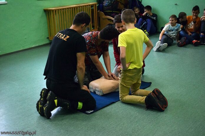 20 listopada na terenie Szkoły Podstawowej nr 1 w Tychach w jednej z klas 6 przeprowadzone zostały zajęcia z udzielania pierwszej pomocy. Nasi reporterzy wspierani przez ratowników medycznych, strażaków i policjantów prowadzą takie akcje już od około dwóch lat w tyskich szkołach. W dniu dzisiejszym w rolę nauczycieli wcielili się funkcjonariusze tyskiej straży pożarnej, którzy swoją wiedzą i umiejętnościami przekazali podstawowe informacje na temat udzielania pierwszej pomocy grupie uczniów. W spotkaniu wzięła udział również policjantka z KMP Tychy. W najbliższym czasie na terenie tyskich szkół przeprowadzone zostaną kolejne pogadanki z elementami nauki pierwszej pomocy. Podziękowania dla Komendanta PSP Tychy, st. bryg. Piotra SZOJDA oraz funkcjonariuszy biorących udział w prelekcji za pomoc w tak ważnym przedsięwzięciu jakim jest nauka udzielania pierwszej pomocy. Ogromne podziękowania kierujemy na ręce st. asp. Jarosława DURKALEC, który swoją wiedzą i zaangażowaniem spowodował zainteresowanie i chęć poznania tajników udzielania pierwszej pomocy wśród zgromadzonych uczniów.