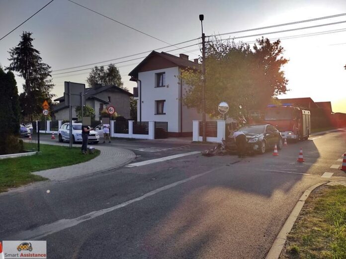 :22 września około godziny 16:45 dyżurny SK KM PSP Tychy otrzymał zgłoszenie o zderzeniu dwóch samochodów osobowych na skrzyżowaniu ul. Fredry – Podmiejska w Lędzinach. Na miejsce natychmiast zadysponowane zostały zastępy OSP Lędziny i JRG Tychy oraz patrol Policji. Na czas działań ratunkowych jak i wykonania dokumentacji ruch na skrzyżowaniu został całkowicie zablokowany. W zdarzeniu brały udział Skoda oraz Opel. Ze wstępnych ustaleń pracujących na miejscu Policjantów wynika, że sprawca zdarzenia jest kierowca Skody, który jadąc ul. Podmiejską nie ustąpił pierwszeństwa jadącemu od Imielina ul. Adamskiego w kierunku Lędzin kierowcy Opla. W wyniku zderzenia Skoda obróciła się o 180 stopni. Utrudnienia w ruchu trwały ponad godzinę. Policjanci KPP Bieruń prowadzą dalsze postępowanie w sprawie tego zdarzenia.
