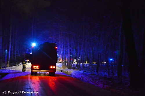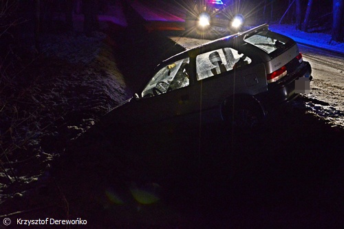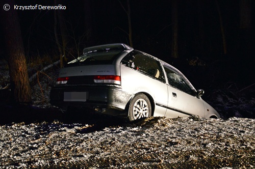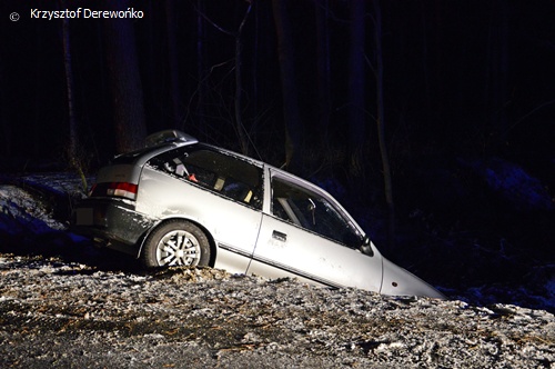 6 grudnia około godziny 21.40 do MSK w Tychach wpłynęło zgłoszenie o zdarzeniu drogowym w Lędzinach na ul. Dzikowej. Na miejsce wysłane zostały 4 zastępy strażaków (po 2 zastępy z JRG Tychy oraz OSP Lędziny), karetki pogotowia oraz patrole Policji z KPP w Bieruniu. Po dotarciu na miejsce ratownicy zastali samochód osobowy Suzuki Swift w rowie. Zdarzenie miało miejsce a łuku drogi w bardzo trudnych warunkach drogowych. Warunki pogodowe i drogowe w znacznym stopniu przyczyniły się do zaistnienia zdarzenia. 2 osoby podróżujące samochodem osobowym zostały zabrane do szpitala na dokładniejsze badania. Działania strażaków polegały głównie na zabezpieczeniu miejsca zdarzenia. W czasie trwania działań ul. Dzikowa była w tym miejscu nieprzejezdna. Dalszym wyjaśnieniem całej sytuacji zajęli się Policjanci z WRD KPP w Bieruniu.