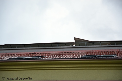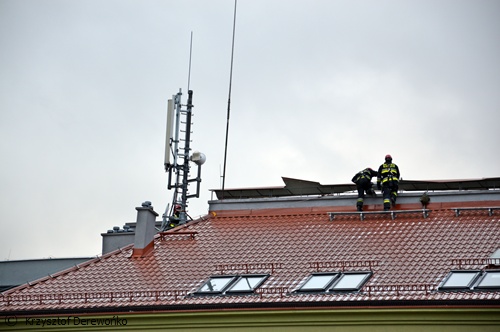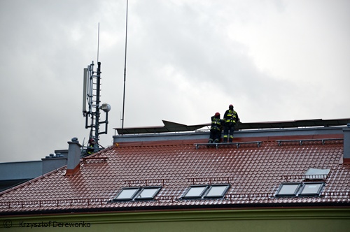 7 grudnia od godzin porannych Tyscy Strażacy usuwają kolejne skutki wichury. Na ul. Budowlanych z jednego z budynków została zerwana blacha na dachu. Na miejsce wysłane zostały dwa zastępy z JRG Tychy oraz patrol Policji. Ze względu na warunki atmosferyczne nie było możliwe użycie drabiny mechanicznej. Strażacy w specjalnych uprzężach usuwali płachty blachy. Przejście obok budynku zostało zamknięte. Działania trwały do godziny 10.30.