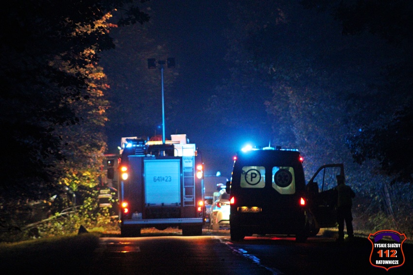 5 października przed godziną 2 w nocy ulicami miasta doszło do policyjnego pościgu. Na ul. Sikorskiego podczas próby zatrzymania pojazdu do kontroli przez funkcjonariuszy Policji, kierowca osobowego Seata podjął próbę ucieczki. Policjanci ruszyli w pościg. O pościgu powiadomiony został dyżurny KMP Tychy, który do działań zadysponował dodatkowe patrole. Kierowca osobówki uciekał ul. Sikorskiego i al. Bielską w kierunku Kobióra. Na leśnym odcinku al. Bielskiej kierowca osobówki utracił panowanie nad swoim pojazdem, wypadł z drogi i uderzył w przydrożne drzewa. Na miejsce zdarzenia natychmiast zadysponowane zostały zastępy JRG Tychy (GBA, SCRt) oraz zespoły ratownictwa medycznego. W wyniku tego zdarzenia 41 – letni pasażer samochodu poniósł śmierć na miejscu, a 38 – letni kierujący z obrażeniami ciała trafił do szpitala. Jak się okazało 38-letni kierujący jest poszukiwany przez Sąd Rejonowy w Tychach dwoma nakazami doprowadzenia do aresztu jak również ma czynny zakaz prowadzenia pojazdów mechanicznych. Mężczyzna był już wielokrotnie zatrzymywany za jazdę pod wpływem alkoholu, przestępstwa przeciwko mieniu czy przestępstwa narkotykowe. Policjanci potwierdzili, że kierujący podczas zdarzenia był trzeźwy, została mu pobrana krew. Działania strażaków na miejscu zdarzenia polegały na jego zabezpieczeniu, oświetleniu oraz wykonaniu dostępu do osób poszkodowanych przy użyciu narzędzi hydraulicznych. Na miejsce zdarzenia zadysponowany został policyjny technik kryminalistyki, grupa dochodzeniowo – śledcza oraz prokurator. W trakcie czynności ruch na tym odcinku drogi został całkowicie zablokowany. Policjanci KMP Tychy pod nadzorem prokuratury prowadzą śledztwo mające na celu wyjaśnienie tego zdarzenia.