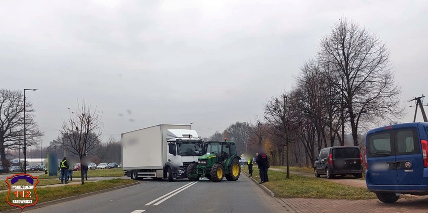 ZDERZENIE CIĘŻARÓWKI Z CIĄGNIKIEM ROLNICZYM NA UL. ŚWIERCZYNIECKIEJ