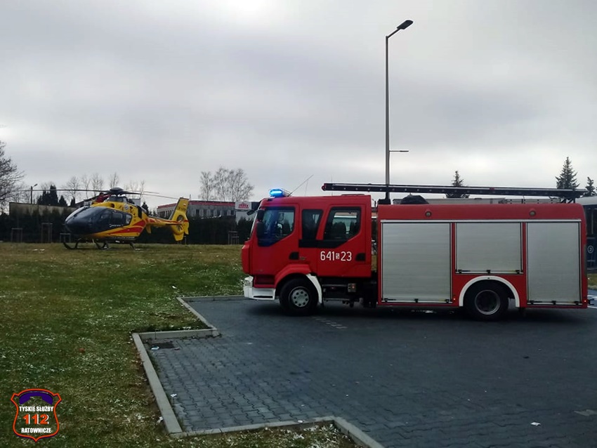 8 grudnia około godziny 11:50 dyżurny SK KM PSP Tychy otrzymał zgłoszenie, że w jednym z domów przy ul. Glinczańskiej znajduje się mężczyzna potrzebujący pomocy medycznej. Osobą zgłaszającą był pracownik tyskiego MOPS-u, który odwiedził swojego podopiecznego i zauważył problemy zdrowotne. Na miejsce zgłoszenia zadysponowane zostały dwa zastępy KM PSP/JRG Tychy oraz Lotnicze Pogotowie Ratunkowe (Ratownik 4) ze względu na brak wolnych naziemnych ZRM. Po przebyciu na miejsce strażacy zabezpieczyli lądowisko dla latającej karetki oraz udzielili mężczyźnie (56 lat) kwalifikowanej pomocy przedmedycznej oraz udzieli mu wsparcia psychicznego do czasu przybycia ratowników i lekarza z załogi LPR-u. Po zaopatrzeniu na miejscu mężczyzna został przeniesiony do śmigłowca i drogą lotniczą został przetransportowany do szpitala w Katowicach Ochojcu. Dodatkowo na miejscu działali funkcjonariusze KMP Tychy. Po godzinie 13 działania zostały zakończone.