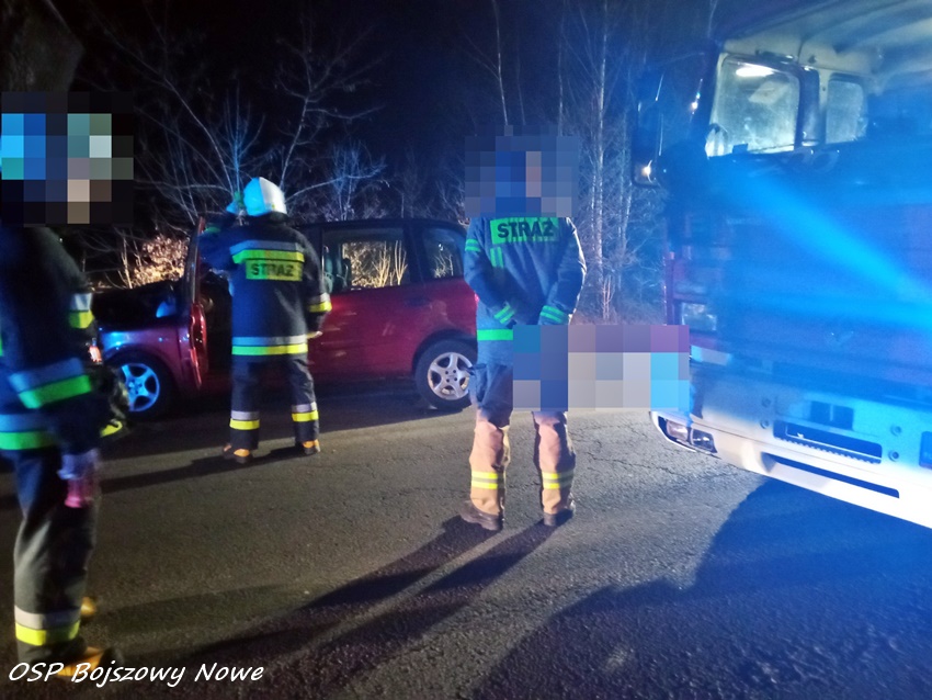 15 marca około godziny 1:45 dyżurni SK KM PSP Tychy oraz KPP Bieruń otrzymali zgłoszenie o wypadku drogowym na ul. Gościnnej (DW 931) w Bojszowach Nowych. Ze zgłoszenia wynikało, że kierujący osobówką zjechał z drogi i uderzył w przydrożne drzewo. Na miejsce zdarzenia natychmiast zadysponowane zostały: ZRM, zastępy OSP Bojszowy Nowe, KM PSP/ JRG Tychy oraz patrole bieruńskiej Policji. Po dotarciu na miejsce zgłoszenie zostało potwierdzone. Kierowca osobowego Fiata znajdował się poza pojazdem, a świadkowie zdarzenia prowadzili u niego resuscytację krążeniowo – oddechową. Przybyli na miejsce ratownicy medyczni wdrożyli medyczne czynności ratunkowe. Niestety pomimo wysiłku świadków oraz medyków nie udało się przywrócić funkcji życiowych. Został stwierdzony zgon. Działania służb ratunkowych na miejscu zdarzenia trwały blisko cztery godziny. Policjanci KPP Bieruń pod nadzorem prokuratury prowadzą dalsze czynności mające na celu dokładne wyjaśnienie tego tragicznego w skutkach zdarzania.
