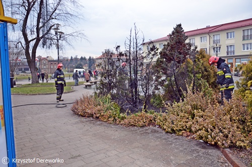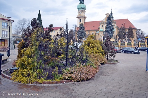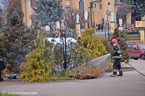 26 grudnia około godziny 15 do dyżurnego Tyskiej Policji i do MSK wpłynęło zgłoszenie o pożarze iglaków na placu przed kościołem św. Marii Magdaleny przy ul. Rynek. Na miejsce wysłany został jeden patrol Policji oraz jeden zastęp z JRG Tychy. Po przybyciu na miejsce funkcjonariusze Policji dokonali zatrzymania 2 nieletnich, którzy dokonali podpalenia iglaków. Przybyli na miejsce Strażacy przy użyciu szybkiego natarcia ugasili płonące iglaki. Dodatkowo przelali sąsiednie. Dokonali również sprawdzenia okolicznych hydrantów. Po około 20 minutach działania zostały zakończone. Nieletni zostali odtransportowani przez Policjantów do swoich rodziców.