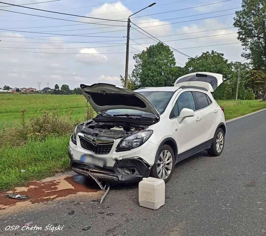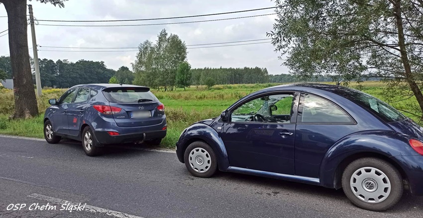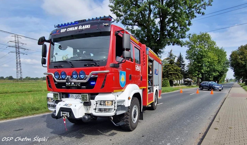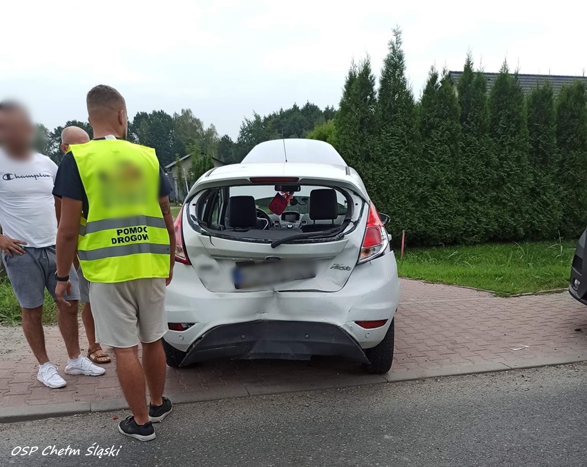 28 sierpnia około godziny 10:30 dyżurny SK KM PSP Tychy otrzymał zgłoszenie o zdarzeniu drogowym na ul. Chełmskiej w Chełmie Śląskim Kopciowicach. Ze zgłoszenia wynikało, że w zdarzeniu brały udział cztery samochody osobowe. Na miejsce zdarzenia zadysponowane zostały: ZRM, zastępy OSP Chełm Śląski, KM PSP/JRG Tychy oraz bieruńska Policja. Na czas działań ruch na ul. Chełmskiej został całkowicie zablokowany. W wyniku zdarzenia poszkodowana została jedna osoba, która została przetransportowana do szpitala na dokładne badania. Z ustaleń pracujących na miejscu Policjantów wynika, że kobieta kierująca Oplem nie zachowała należytej ostrożności i uderzyła w tył znajdującego się przed nią Forda. W wyniku uderzenia Ford uderzył w poprzedzającego VW, a ten następnie uderzył jeszcze w Hyundaia. Policjanci zakwalifikowali to zdarzenie jako kolizja i ukarali sprawczynie mandatem karnym.