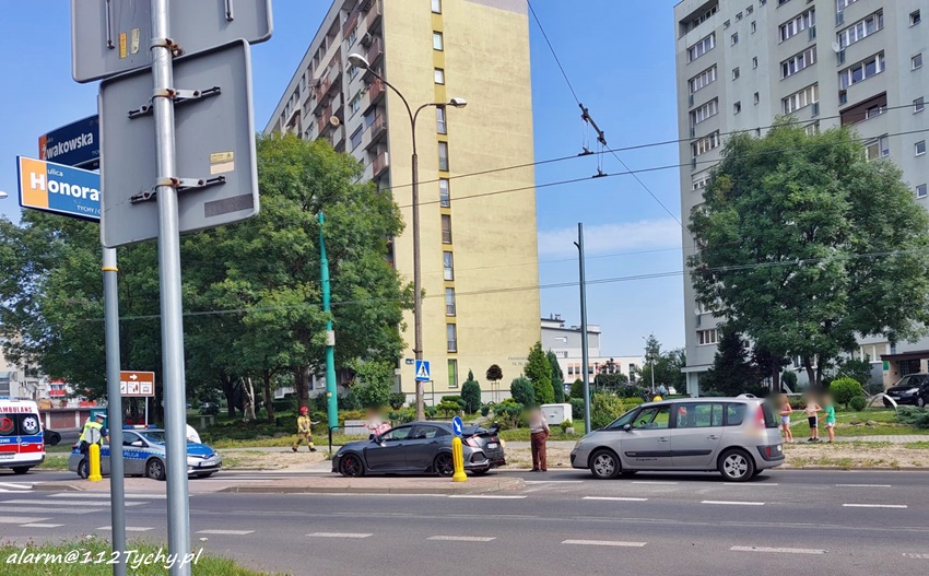27 sierpnia około godziny 11:30 na ul. Żwakowskiej w rejonie oznakowanego przejścia dla pieszych doszło do zdarzenia drogowego z udziałem dwóch pojazdów. W tył zatrzymującej się przed przejściem dla pieszych Hondy uderzyło Renault (taxi). Na miejsce zdarzenia zadysponowane zostały: ZRM, zastępy KM PSP/JRG Tychy oraz patrol Policji. Na czas działań ruch na pasie w kierunku ul. Harcerskiej został zablokowany. Kierowca Hondy trafił pod opiekę ratowników medycznych ale na szczęście nie doznał on poważnych obrażeń. Policjanci sprawcą zdarzenia uznali kierowcę Renault. Działania służb na miejscu trwały około godziny.