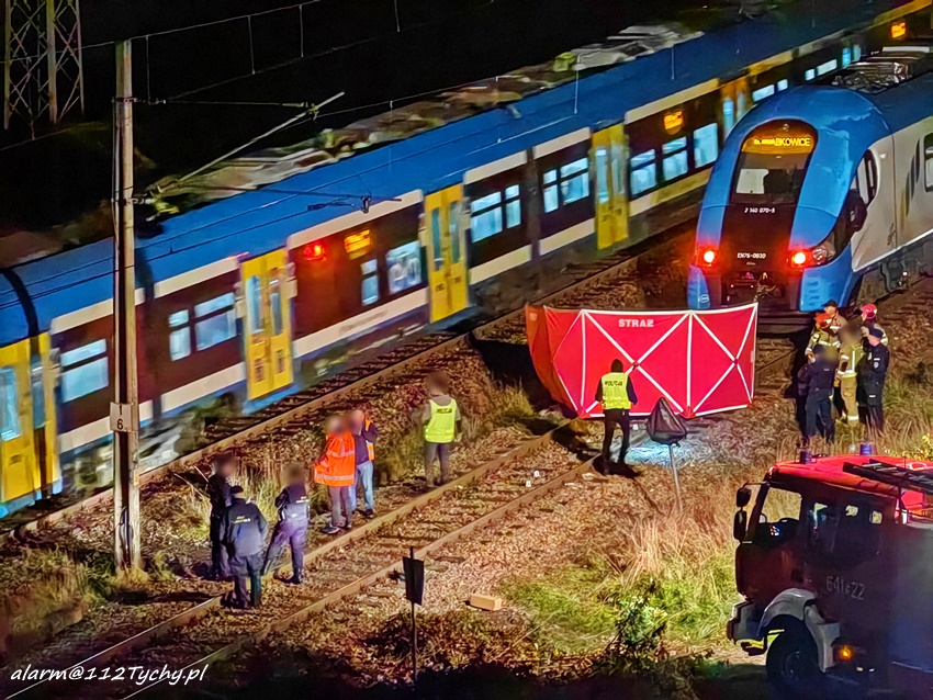 26 października około godziny 19 dyżurni KMP Tychy i SK KM PSP Tychy otrzymali zgłoszenie o prawdopodobnym potraceniu osoby postronnej przez pociąg pasażerski relacji Tychy Lodowisko – Dabrowa Górnicza Ząbkowice w rejonie dzikiego przejścia przez tory przy ul. Barona. Na miejsce zgłoszenia natychmiast zadysponowane zostały: ZRM, zastępy KM PSP Tychy oraz patrole Policji, Straży Miejskiej i Straż Ochrony Kolei. Niestety po przybyciu służb ratunkowych na miejsce zgłoszenie zostało potwierdzone. W wyniku potrącenia przez pociąg śmierć poniosła młoda kobieta (22 lata). Na miejsce wezwany został prokurator, grupa dochodzeniowo – śledcza KMP Tychy oraz technik kryminalistyki. Na czas działań służb ruch kolejowy odbywał się wahadłowo jednym torem. Działania służb ratunkowych w miejscu zdarzenia trwały około dwie godziny. Policjanci KMP Tychy pod nadzorem prokuratury prowadzą dalsze czynności mające na celu wyjaśnienie przyczyn tej tragedii. Rodzinie i znajomym zmarłej składamy najszczersze kondolencje.