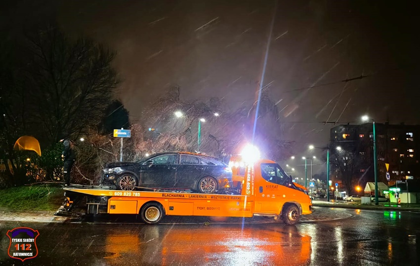 1 lutego około godziny 19:40 dyżurny SK KM PSP Tychy otrzymał zgłoszenie o zdarzeniu drogowym na rondzie Polonia (Żwakowska – al. Bielska – al. Jana Pawła II). Ze zgłoszenia wynikało, że kierowca samochodu osobowego marki KIA stracił panowanie nad swoim pojazdem i wjechał na wyspę ronda. Na miejsce zdarzenia natychmiast zadysponowane zostały: ZRM, zastępy KM PSP/JRG Tychy oraz patrole Policji i Straży Miejskiej. Po przybyciu na miejsce zgłoszenie zostało potwierdzone. 36 – latek trafił pod opiekę ratowników medycznych, a następnie został przetransportowany do szpitala na dokładną diagnostykę. Działania służb ratunkowych na miejscu zdarzenia trwały około godziny. Po około dwóch godzinach uszkodzony pojazd został został odholowany przez pomoc drogową. Policjanci KMP Tychy prowadzą dalsze postępowanie w tej sprawie.