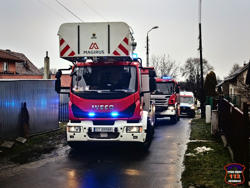 2 lutego około godziny 9:25 dyżurny SK KM PSP Tychy otrzymał zgłoszenie o pożarze piwnicy w domu jednorodzinnym przy ul. Jaskółczej. Na miejsce zgłoszenia natychmiast zadysponowane zostały zastępy KM PSP/JRG Tychy. Po przybyciu na miejsce zgłoszenie zostało potwierdzone. Z budynku ewakuowana została kobieta z dwójką małych dzieci, a strażacy w aparatach ochrony układu oddechowego weszli do piwnicy podając prąd wody. Kobieta wraz z dziećmi trafiła pod opiekę wezwanego na miejsce zespołu ratownictwa medycznego. Po przebadaniu dzieci pozostały na miejscu pod opieką członka rodziny, a kobieta została przetransportowana do szpitala na dalszą diagnostykę. Na czas działań ruch na ul. Jaskółczej był całkowicie zablokowany. Trwa ustalanie przyczyn i okoliczności powstania pożaru. Działania służb na miejsc trwały około godziny.