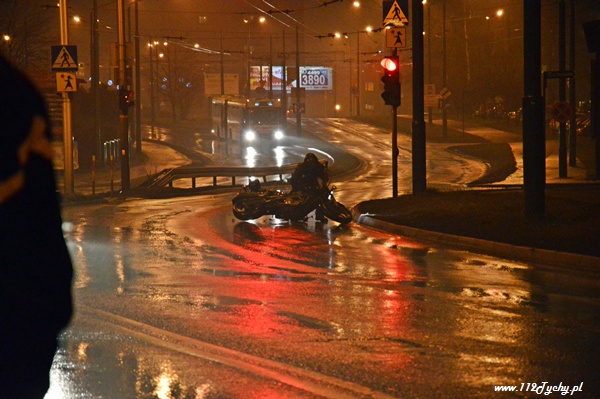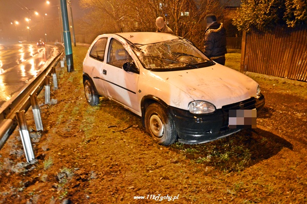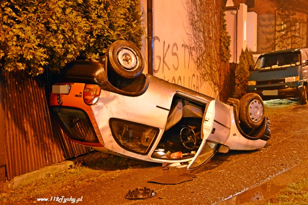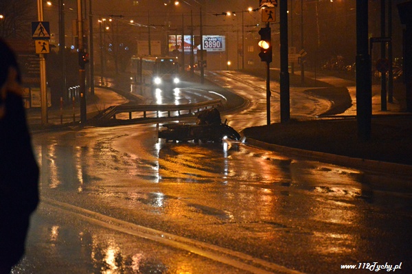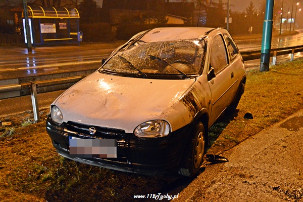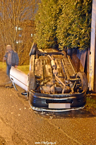 18 stycznia po godzinie 21 do dyżurnego tyskiej Policji wpłynęło zgłoszenie o zdarzeniu drogowym na ul. Piłsudskiego. Ze zgłoszenia wynikało, że jadący w stronę TESCO samochód osobowy wylądował na dachu. Na miejsce wysłany został patrol WRD Policji oraz karetka pogotowia. Po dotarciu na miejsce okazało się, że młoda kobieta kierująca Oplem utraciła panowanie nad swoim samochodem dachowała zatrzymując się na ogrodzeniu jednego z domów. Przed przybyciem służb została ona wyciągnięta z rozbitego samochodu przez świadków zdarzenia. Kierująca samochodem osobowym została zabrana do szpitala na badania. po wykonaniu oględzin przez Policjantów samochód został postawiony na koła. Wówczas okazało się, że wyciekają z niego płyny eksploatacyjne. Do pomocy został zadysponowany jeden zastęp z JRG Tychy (GBA). Strażacy zneutralizowali rozlane płyny. Pojazd został zepchnięty na pobliski parking. Gdy już wszystkie służby miały wracać do koszar doszło do kolejnego zdarzenia. Jadący w stronę centrum mężczyzna na motocyklu utracił panowanie nad swoim jednośladem wpadł w poślizg i się wywrócił. Natychmiast służby ruszyły mu na pomoc. Jednak jak się okazało nic mu się nie stało, a uszkodzeniu uległ jedynie sprzęt. Wszystkie działania na miejscu zostały zakończone po około 45 minutach.