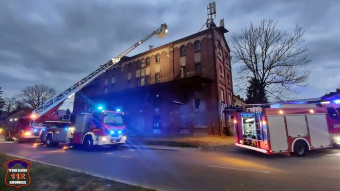 27 kwietnia przed godziną 20 dyżurny SK KM PSP Tychy otrzymał zgłoszenie o pożarze młyna przy ul. Starokościelnej. Na miejsce natychmiast zadysponowany został pluton gaśniczy JRG Tychy oraz Policja. Po przybyciu na miejsce ruch na ulicy Starokościelnej został całkowicie zablokowany. W trakcie rozpoznania okazało się, że do budynku dostała się dwójka nieletnich w wieku 8 i 11 lat, którzy na ostatniej kondygnacji budynku podpalili śmieci i inne składowane tam materiały. Dzieci po podpaleniu wyposażenie i śmieci zorientowały się w zagrożeniu i próbowały samodzielnie ugasić wzniecony pożar przy użyciu znalezionej gaśnicy. W trakcie tych działań jeden z nieletnich doznał urazu ręki (podejrzenie złamania). Został on zabezpieczony przez strażaków (udzielenie pierwszej pomocy) i przekazany ratownikom medycznym z wezwanego na miejsce ZRM. Drugi z nieletnich został przekazany pod opiekę rodziców, którzy przybyli na miejsce. Strażacy przy użyciu podręcznego sprzętu gaśniczego (hydronetka) dogasili tlące się elementy. Działania na miejscu trwały około godziny. Policjanci KMP Tychy prowadzą dalsze postępowanie w sprawie tego pożaru.