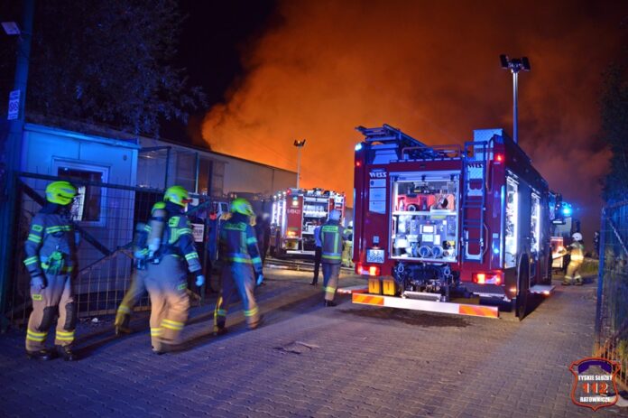 16 lipca około godziny 2:30 dyżurny SK KM PSP Tychy otrzymał zgłoszenie o pożarze składu makulatury na terenie jednej z firm przy ul. Zwierzynieckiej. Na miejsce zgłoszenia zadysponowane zostały zastępy JRG Tychy oraz Policja. Łuna pożaru widoczna była z kilku kilometrów. Po przybyciu na miejsce KDR poprosił o zadysponowanie dodatkowych sił i środków. Do działań zadysponowane zostały zastępy jednostek OSP Bojszowy, Bojszowy Nowe, Bieruń Nowy oraz Chełm Śląski. Dodatkowo poprzez WSKR Katowice do działań zadysponowane zostały: pluton gaśniczy Katowice, zastęp JRG 2 Ruda Śląska Orzegów, pluton zaopatrzenia wodnego Magistrala Gliwice (odesłany do koszar) oraz grupa operacyjna KW PSP Katowice. Działania były prowadzone na kilku odcinkach bojowych. Zaopatrzenie wodne zrealizowane zostało z podziemnego zbiornika ppoż. znajdującego się na terenie firmy. Po godzinie 4 sytuacja została opanowana. W działania zaangażowali się również pracownicy firmy, którzy ewakuowali samochody z terenu zakładu, a następnie przy użyciu ładowarek przerzucali makulaturę co znacznie ułatwiło strażakom pracę. Dogaszanie pogorzeliska potrwa wiele godzin. Po wyczerpaniu wody w zbiorniku ppoż. wyznaczone zostały punkty czerpania wody, przy ul. Tulipanów i ul. Mikołowskiej (teren browaru) oraz przy ul. Zwierzynieckiej (parking dyskontu spożywczego). Na chwilę obecną nie są znane przyczyny i okoliczności powstania pożaru. Zabezpieczenie rejonu operacyjnego KM PSP Tychy pełni zastęp OSP Lędziny. Około godziny 8 na terenie pogorzeliska oraz na zabezpieczeniu rejonu operacyjnego nastąpiła podmiana strażaków. Przed godziną 11 na miejsce pożaru przyjechali również przedstawiciele Wojewódzkiego Inspektoratu Ochrony Środowiska. Działania na miejscu zostały zakończone około godziny 20.