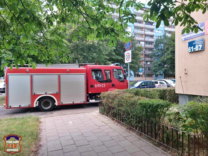 16 lipca około godziny 20 dyżurny SK KM PSP Tychy otrzymał zgłoszenie o piszczącej czujce tlenku węgla w jednym z mieszkań w budynku wielorodzinnym przy ul. Dąbrowskiego 61 – 67. Na miejsce zgłoszenia zadysponowany został zastęp strażaków JRG Tychy i patrol Policji. Po przybyciu na miejsce okazało się, że pomimo pukania nikt nie otwiera drzwi. W wyniku przeprowadzonego rozpoznania okazało się, że lokatorzy są poza miejscem zamieszkania, a w mieszkaniu nikogo nie ma. Strażacy wykonali swoje czynności i po około czterdziestu minutach działania zostały zakończone.