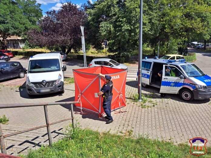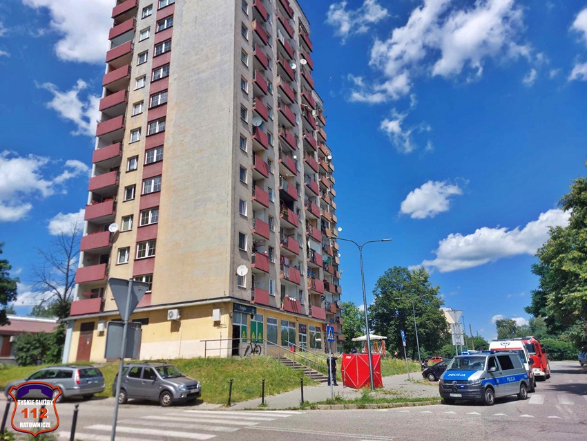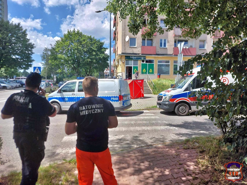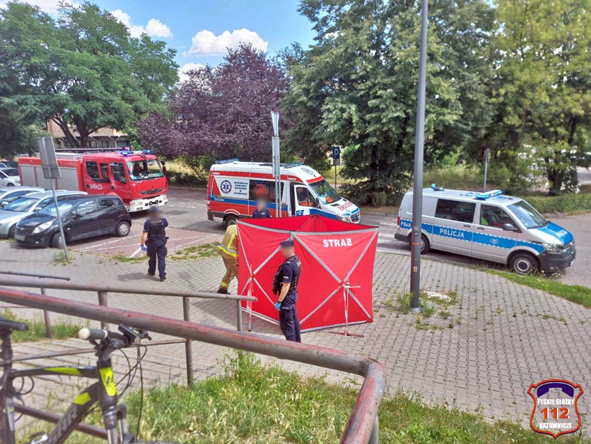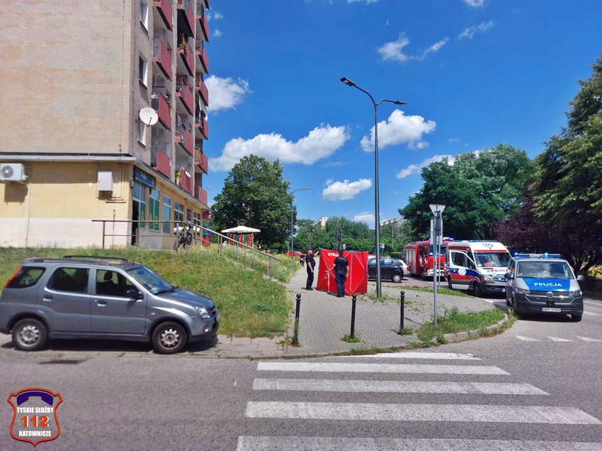 18 lipca około godziny 13 dyżurny KMP Tychy otrzymał zgłoszenie o upadku z wysokości przy budynku wielorodzinnym na al. Jana Pawła II 32 – 34. Na miejsce zgłoszenia natychmiast zadysponowane zostały: ZRM, patrol Policji oraz zastęp strażaków JRG Tychy. Po przybyciu na miejsce zgłoszenie zostało potwierdzone. Niestety w wyniku odniesionych obrażeń mężczyzna (35 lat) poniósł śmierć na miejscu. Na miejsce wezwany został lekarz, który stwierdził zgon oraz policyjna grupa dochodzeniowo – śledcza i prokurator. Ze wstępnych czynności wykonanych na miejscu tragicznego zdarzenia wynika, że mężczyzna wypadł lub wyskoczył z okna swojego mieszkania na 12. piętrze budynku. Decyzją prokuratora zlecona została sekcja zwłok denata, a jego mieszkanie zostało zabezpieczone. Policjanci KMP Tychy pod nadzorem prokuratury prowadzą śledztwo w tej sprawie.