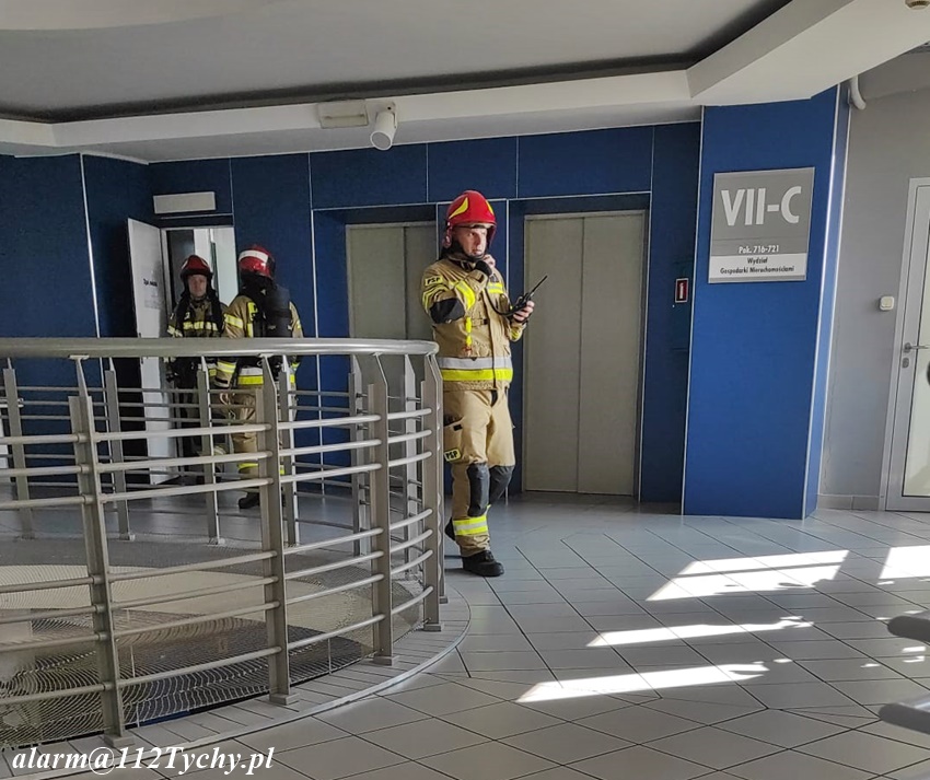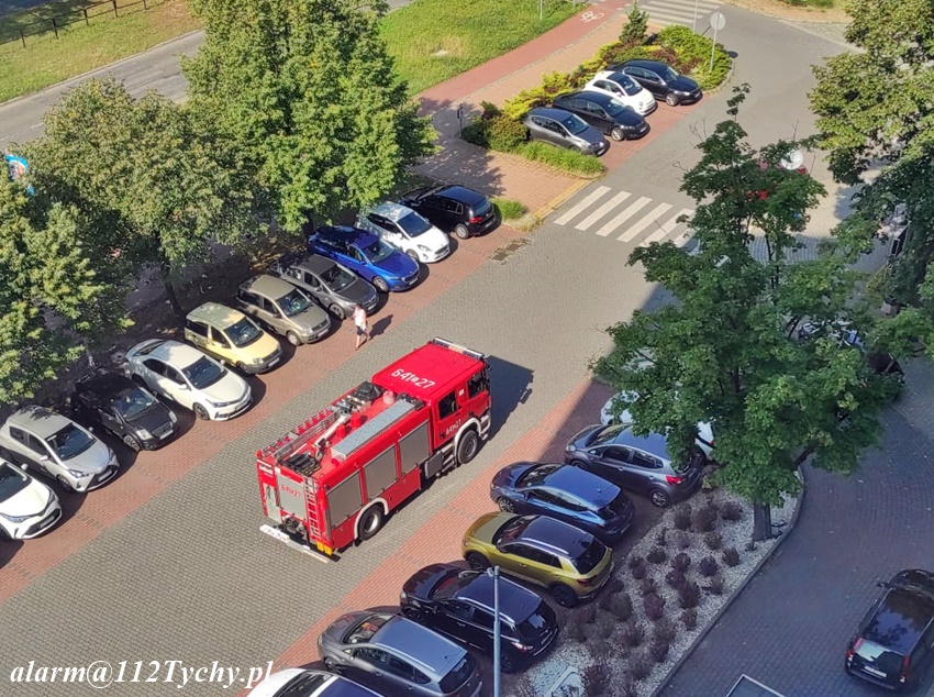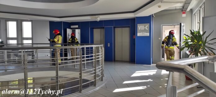 18 sierpnia około godziny 9:25 dyżurny SK KM PSP Tychy otrzymał zgłoszenie o zagrożeniu pożarowym w budynku Urzędu Miasta przy al. Niepodległości 49. Na miejsce zgłoszenia zadysponowane zostały zastępy JRG Tychy oraz OSP Lędziny (w związku z innymi działaniami zastępów JRG Tychy). Ze zgłoszenia wynikało, że do pożaru miało dojść na siódmym piętrze budynku. Z budynku przed przybyciem ewakuowała się część pracowników i petentów. Po przybyciu na miejsce i rozpoznaniu sytuacji nie znaleziono pożaru. Ze wstępnych ustaleń przyczyną alarmu była awaria systemu przeciwpożarowego w budynku. Budynek został dokładnie sprawdzony i po około godzinie działania zostały zakończone.