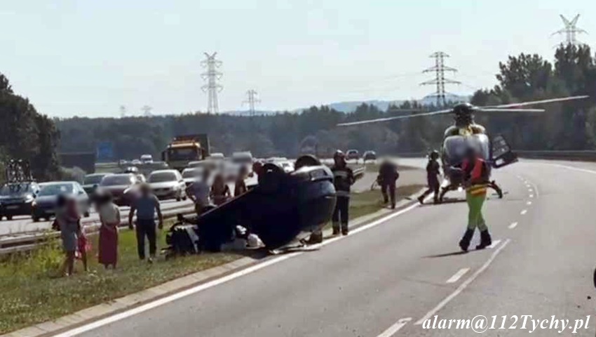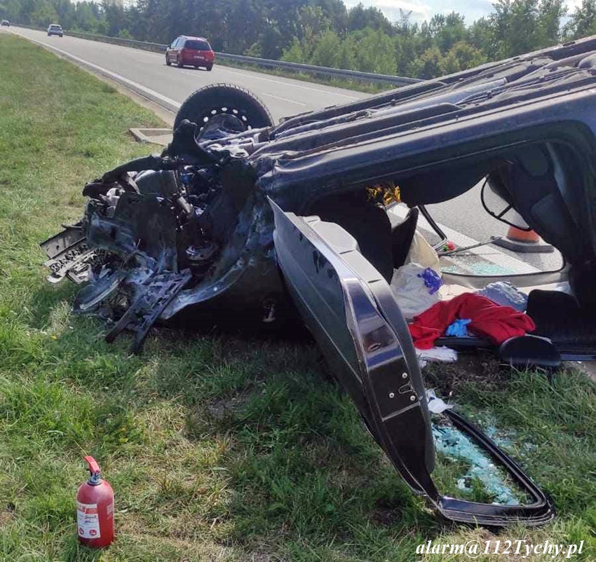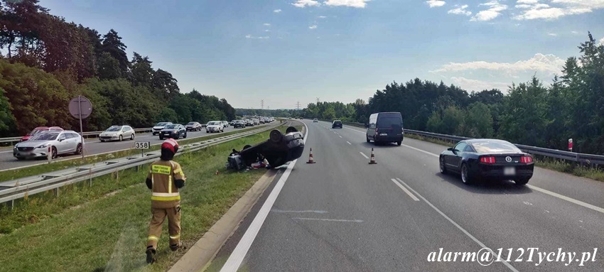 26 sierpnia około godziny 10:30 dyżurny SK KM PSP Tychy otrzymał zgłoszenie o dachowaniu samochodu osobowego na 358km autostrady A4 w kierunku Krakowa. Na miejsce zdarzenia zadysponowane zostały liczne zastępy straży pożarnej z: OSP Imielin, JRG Tychy, JRG Jaworzno, JRG Mysłowice oraz ZRM, śmigłowiec LPR, Policja oraz służba autostradowa. Na czas działań ratowniczych ruch w kierunku Krakowa był całkowicie zablokowany. Z ustaleń pracujących na miejscu Policjantów wynika, że kierujące Oplem kobieta utraciła panowanie nad swoim pojazdem uderzyła w bariery i dachowała. Ogromne słowa uznania dla świadków zdarzenia, którzy pospieszyli poszkodowanej z pomocą. Z obrażeniami ciała została przetransportowana latającą karetką do szpitala. Utrudnienia w ruchu na autostradzie trwały około godziny.