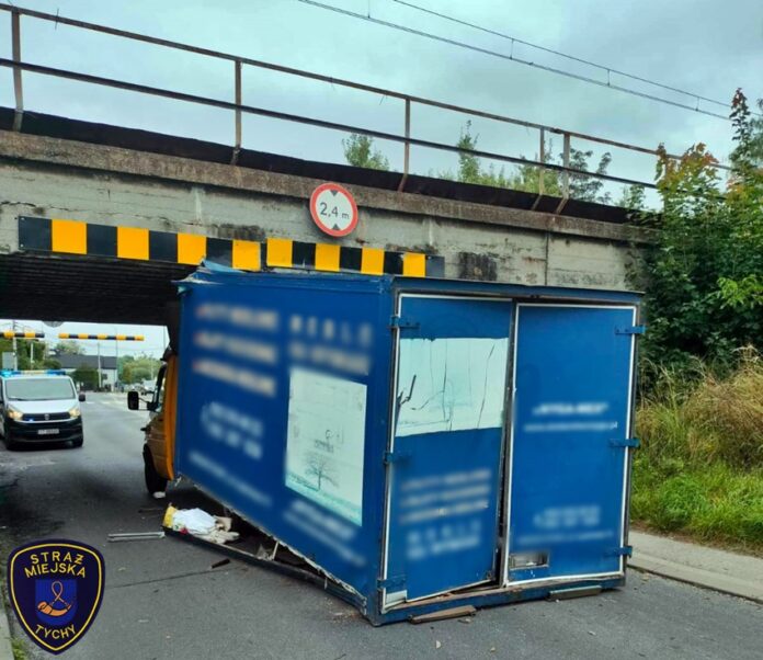 27 sierpnia po godzinie 12 na ul. Glinczańskiej doszło do kolejnego zdarzenia drogowego z udziałem samochodu dostawczego i bramownic oraz betonowego mostu. Kierujący dostawczym Mercedesem mężczyzna nie zastosował się do znaków ograniczających wysokość pojazdu do 2,4m (znak B-16) i dosłownie urwał zabudowę pojazdu. Na miejsce zdarzenia zadysponowane zostały patrole Straży Miejskiej oraz Policji. Kierowca dostawczaka był trzeźwy, Za spowodowanie zdarzenia drogowego i nie zastosowanie do znaków został ukarany mandatem. Uszkodzony pojazd został odholowany. Utrudnienia w ruchu w miejscu zdarzenia trwały ponad godzinę.