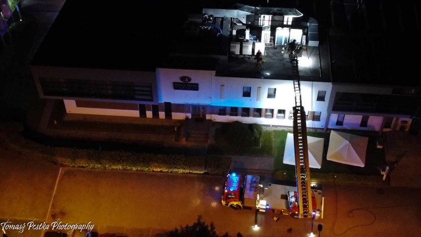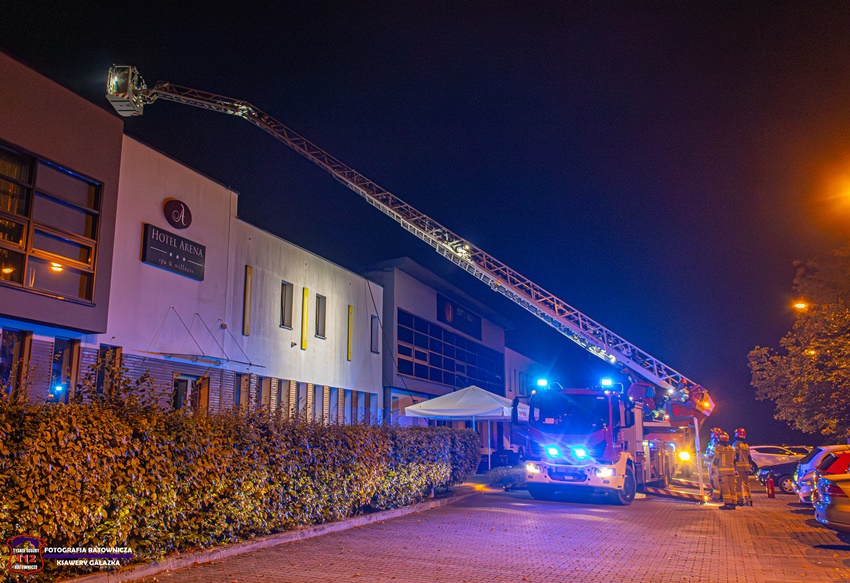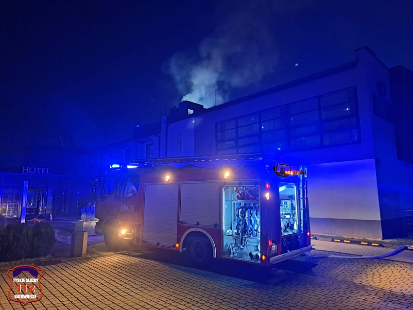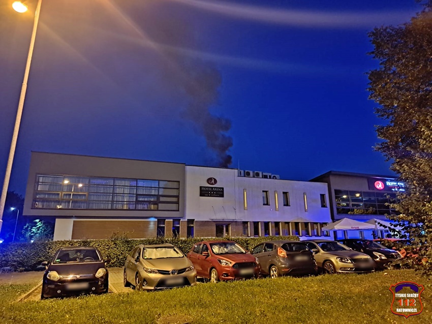 27 sierpnia o godzinie 20:17 dyżurny SK KM PSP Tychy otrzymał zgłoszenie o pożarze budynku Hotelu Arena przy ul. Ch. de Gaulle’a. Na miejsce zgłoszenia natychmiast zadysponowany został pluton gaśniczy JRG Tychy oraz Policja. Już w trakcie dojazdu zastępów strażacy widzieli pożar na dachu budynku w rejonie urządzeń filtrowentylacyjnych. Po sprawieniu drabiny mechanicznej strażacy dostali się na dach i przystąpili do działań gaśniczych. Po kilkunastu minutach sytuacja została opanowana. Z budynku hotelu ewakuowane zostały 33 osoby (23 klientów i 10 pracowników). Działania na miejscu trwały około dwie godziny. Trwają czynności mające na celu wyjaśnienie przyczyn i okoliczności powstania pożaru.