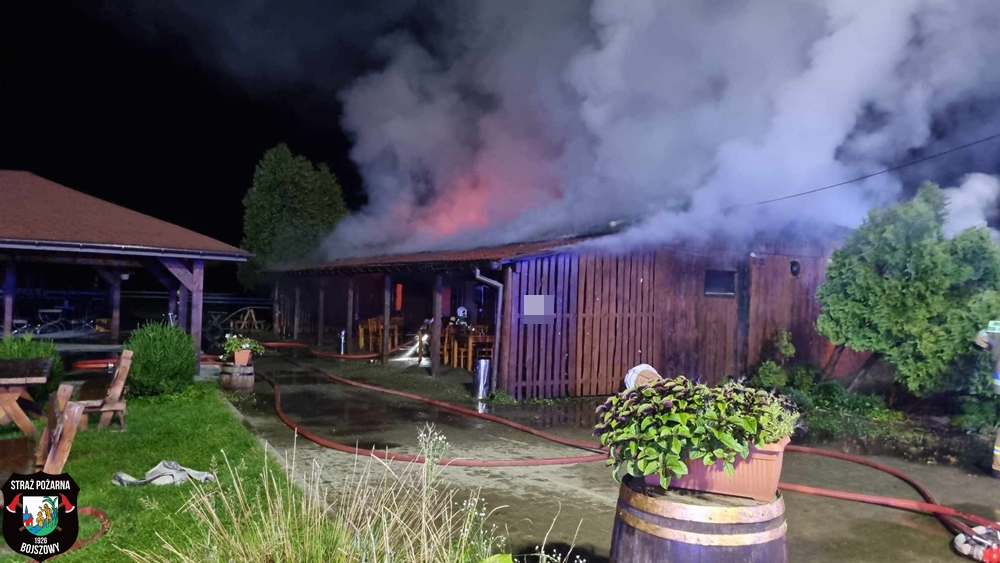 8 września o godzinie 2:37 dyżurny SK KM PSP Tychy otrzymał zgłoszenie o pożarze budynku restauracji przy ul. Jedlińskiej w Bojszowach. Ze zgłoszenia wynikało, że budynek w całości jest objęty pożarem. Na miejsce natychmiast zadysponowano zostały strażaków OSP Bojszowy, JRG Tychy, OSP Bieruń Nowy oraz Policja. Po przybyciu na miejsce zgłoszenie zostało potwierdzone. Celem ugaszenia pożaru zbudowano pięć linii gaśniczych. Zaopatrzenie wodne zostało wykonane z sieci hydrantowej znajdującej się w odległości ok. 100m od miejsca pożaru. Lokal spłonął doszczętnie. Około godziny 6 działania na miejscu zostały zakończone. Policjanci KPP Bieruń ustalają przyczyny io okoliczności powstania tego pożaru.