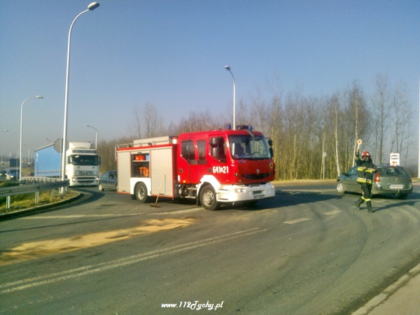 4 lutego około godziny 12.15 na ul. Serdecznej doszło do zderzenia Seata z VW. Na miejsce kolizji wysłany został patrol WRD KMP Tychy. Po dojeździe na miejsce okazało się, że kierująca Seatem włączając się do ruchu nie zauważyła nadjeżdżającego od lewej strony VW. Doszło do kolizji. Pojazdy zostały dość mocno uszkodzone. Na szczęście obydwu kierującym nic się nie stało. Zabezpieczający miejsce kolizji Policjanci ze względu na duży wyciek płynów eksploatacyjnych podjęli decyzję o konieczności zadysponowana na miejsce Straży Pożarnej. Na miejsce zadysponowany został jeden zastęp z JRG Tychy (GBA). Strażacy po dotarciu na miejsce pomogli w zabezpieczeniu miejsca kolizji, kierowali ruchem oraz zneutralizowali rozlane płyny oraz uprzątnęli rozsypane części pojazdów. Utrudnienia w ruchu trwały około 40 minut. Pojazdy zostały odholowane przez pomoc drogową. Dalsze czynności prowadzą funkcjonariusze WRD KMP Tychy.